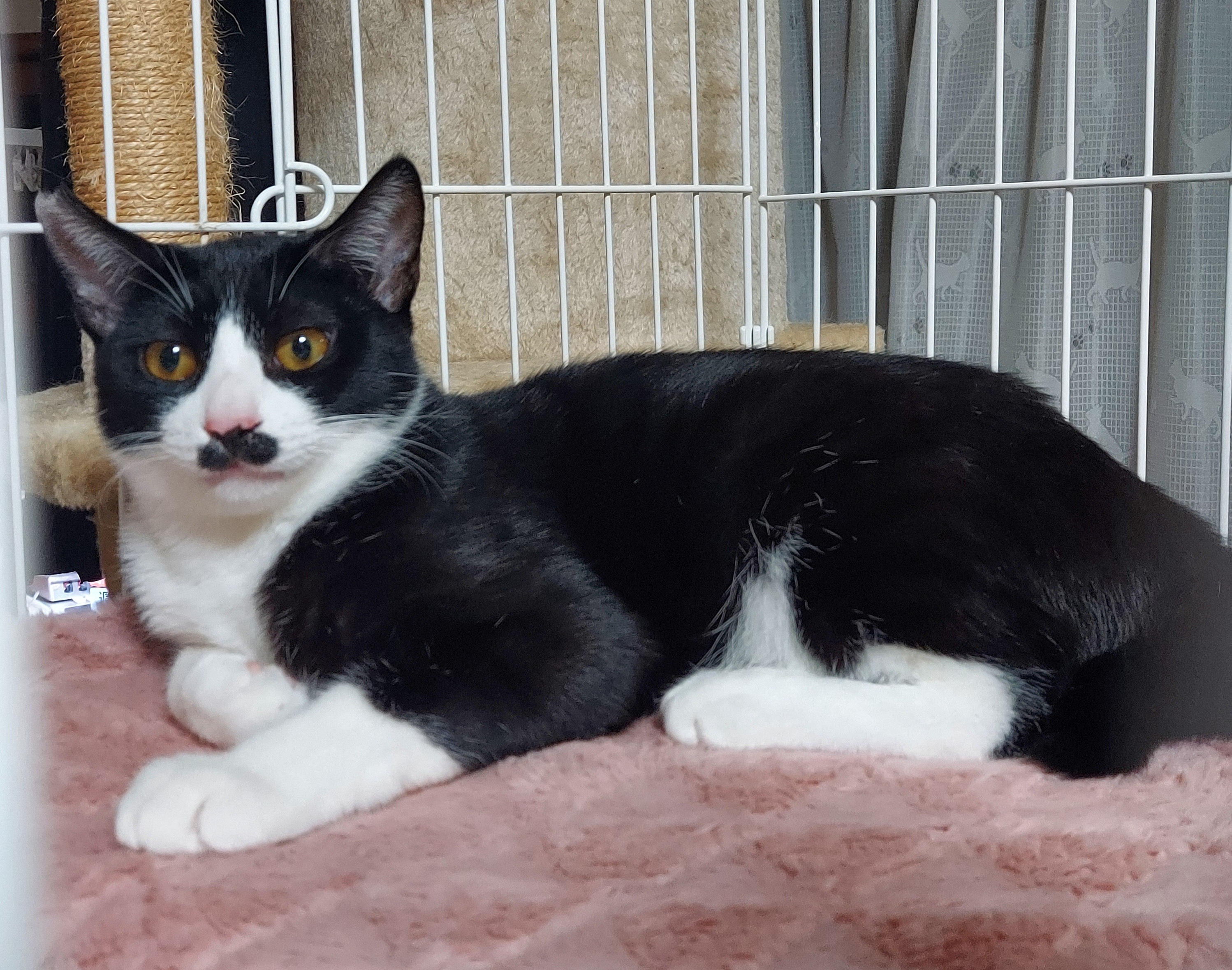 トライアルに行ったのですがくしゃみをする、うちの先住はワクチン打っていないんだからって里親さんに返されて以来、こちらで暮らしています。