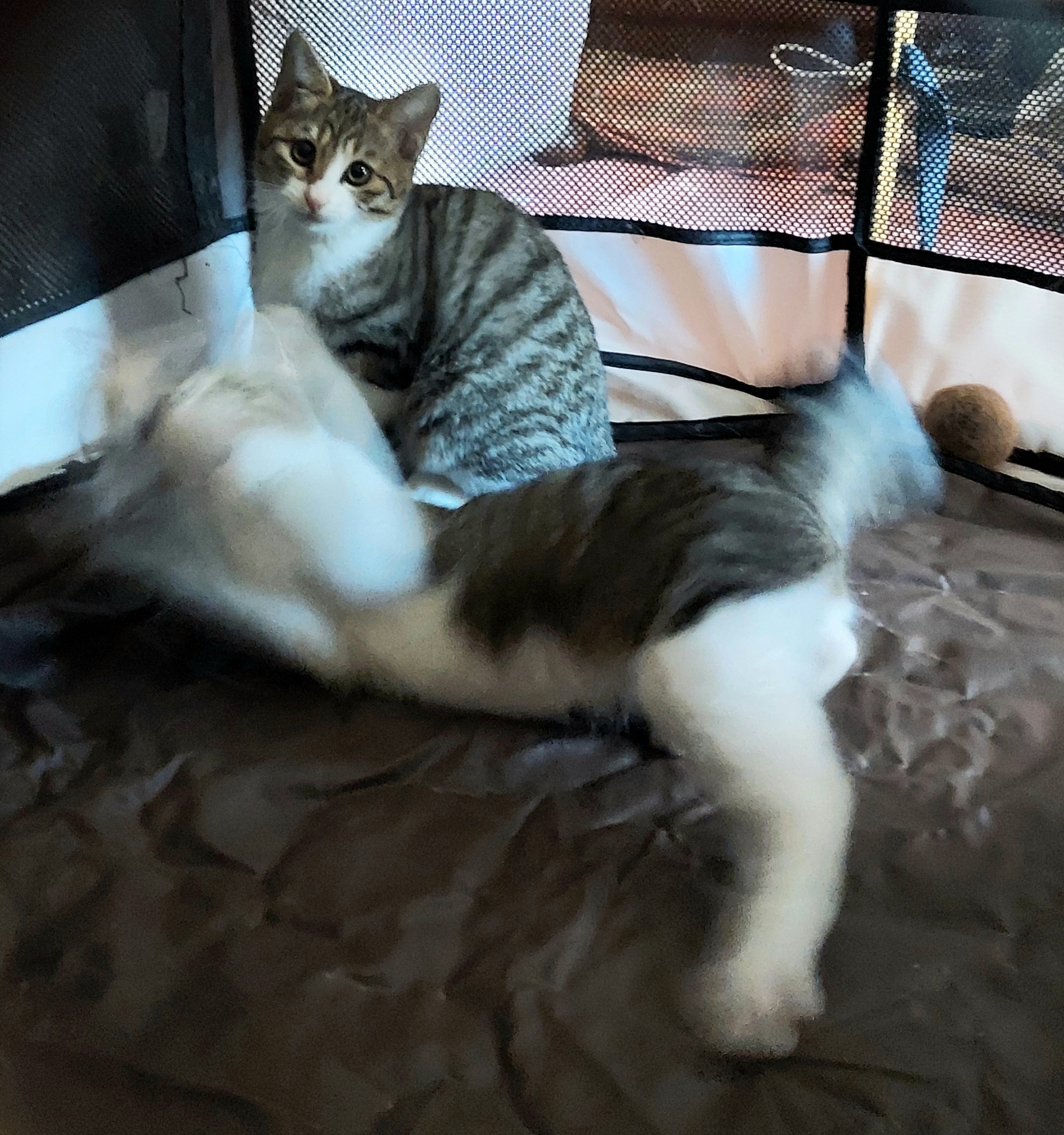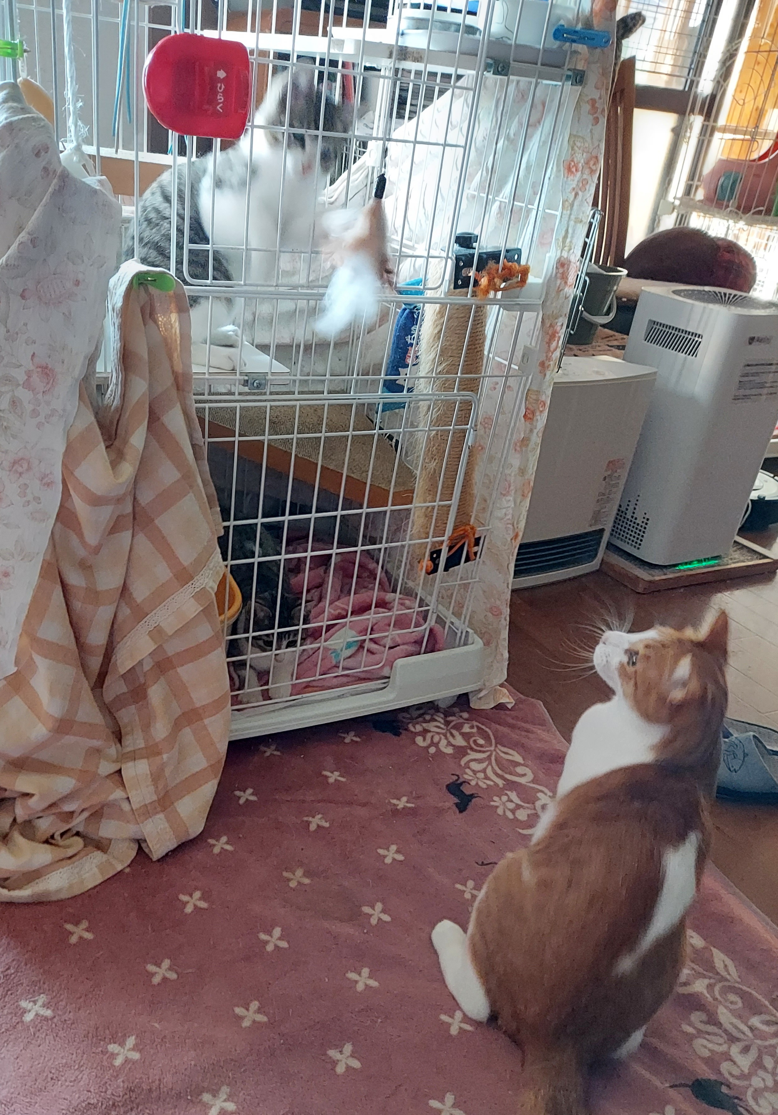わちゃわちゃとケージの中でソフトに遊び
