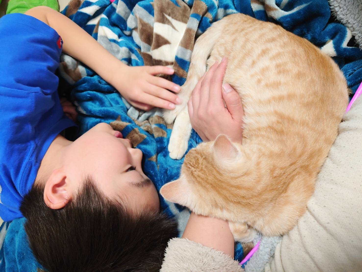 まだ緊張している様子ですが、とっても素敵なご家族+2にゃんがいますからだいじょうぶ!!