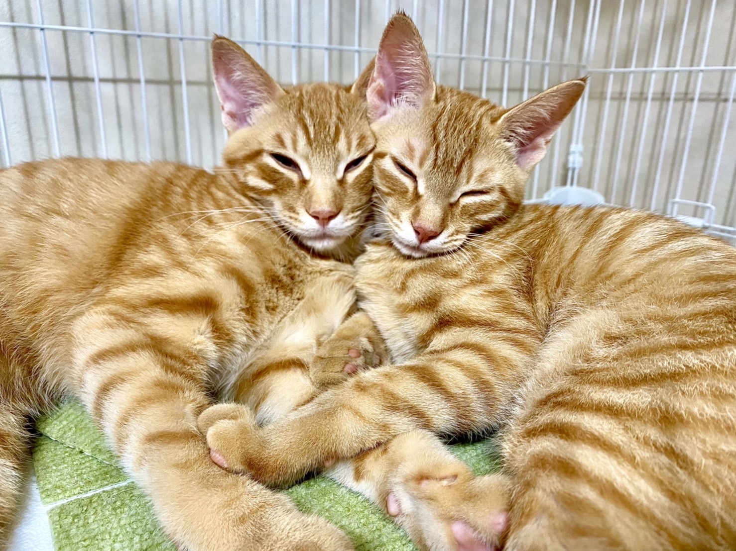 避妊去勢手術を済まして一安心!! べるくんはみみちゃんが手術でいなかったときは大声で鳴いて探したそうです。ますます甘ったれになった二人だそうです。