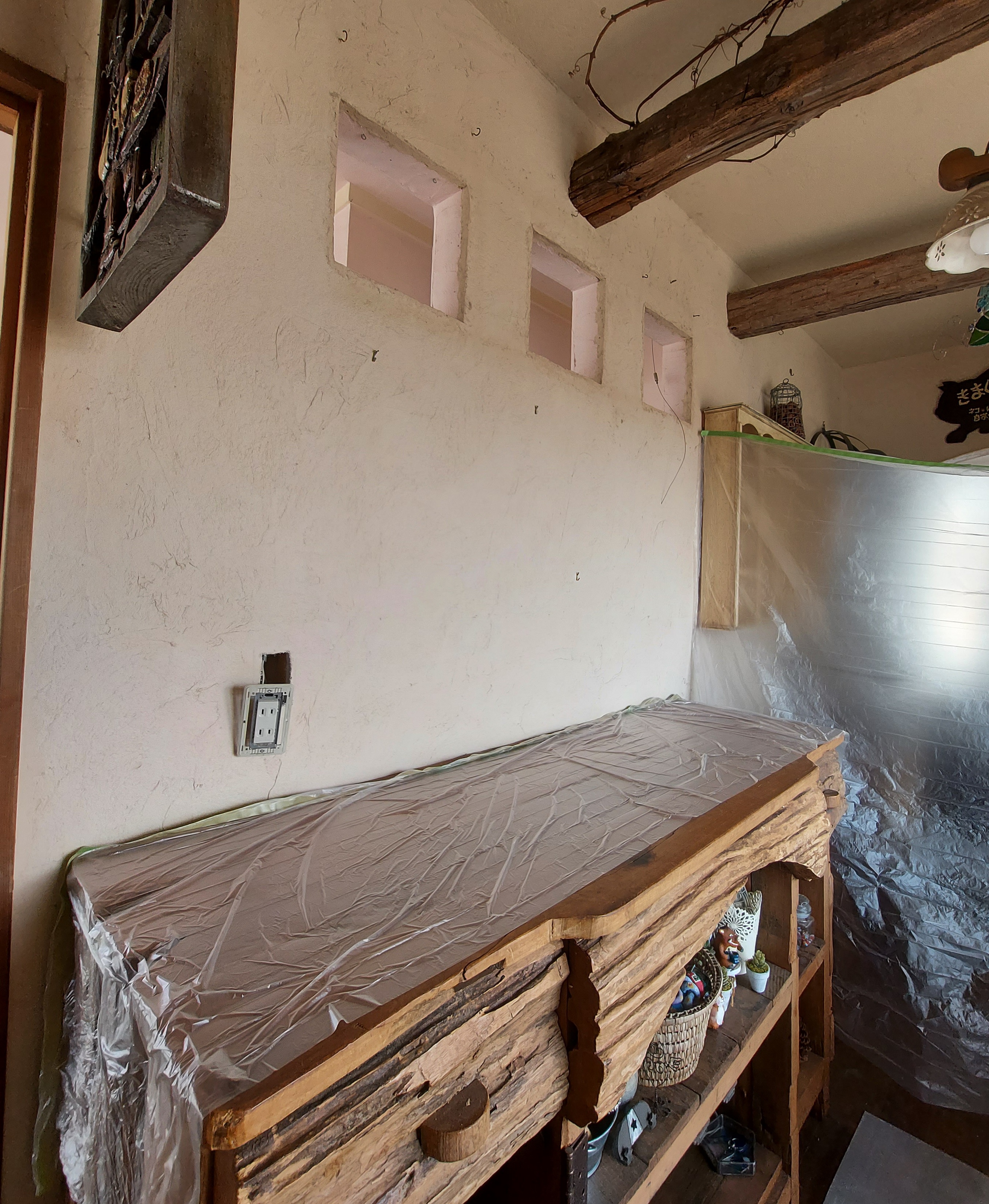珈琲壹番館さんときまぐれ堂さんの間の壁をくりぬく工事をしました。