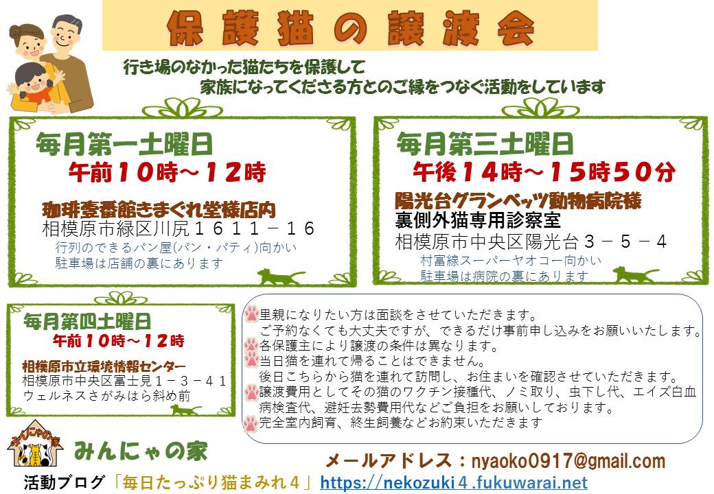 また、保健所での譲渡会も参加致します。