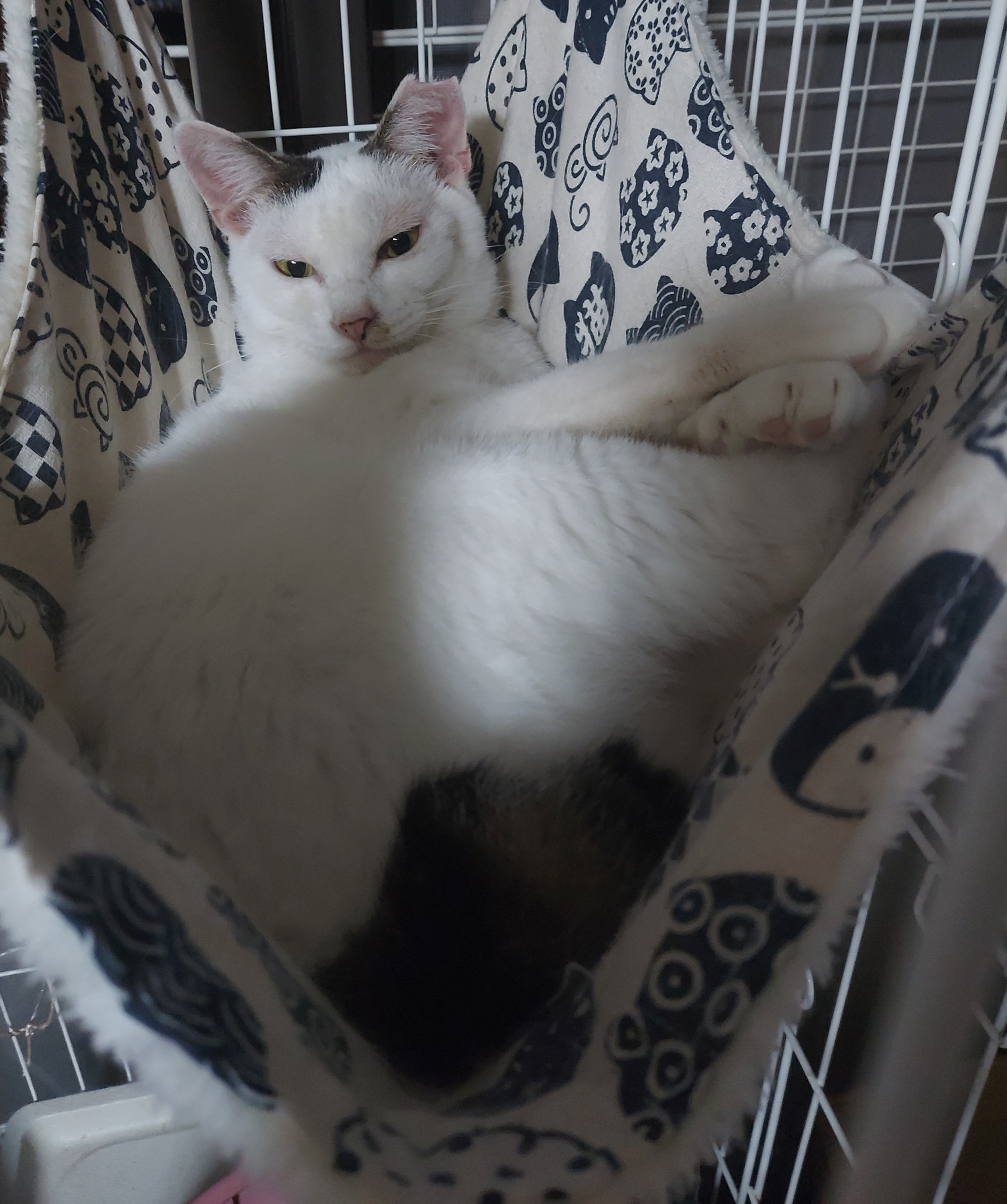 真菌の疑いありで他の猫への感染予防のため、リビング側のゲージに隔離していたかりん。