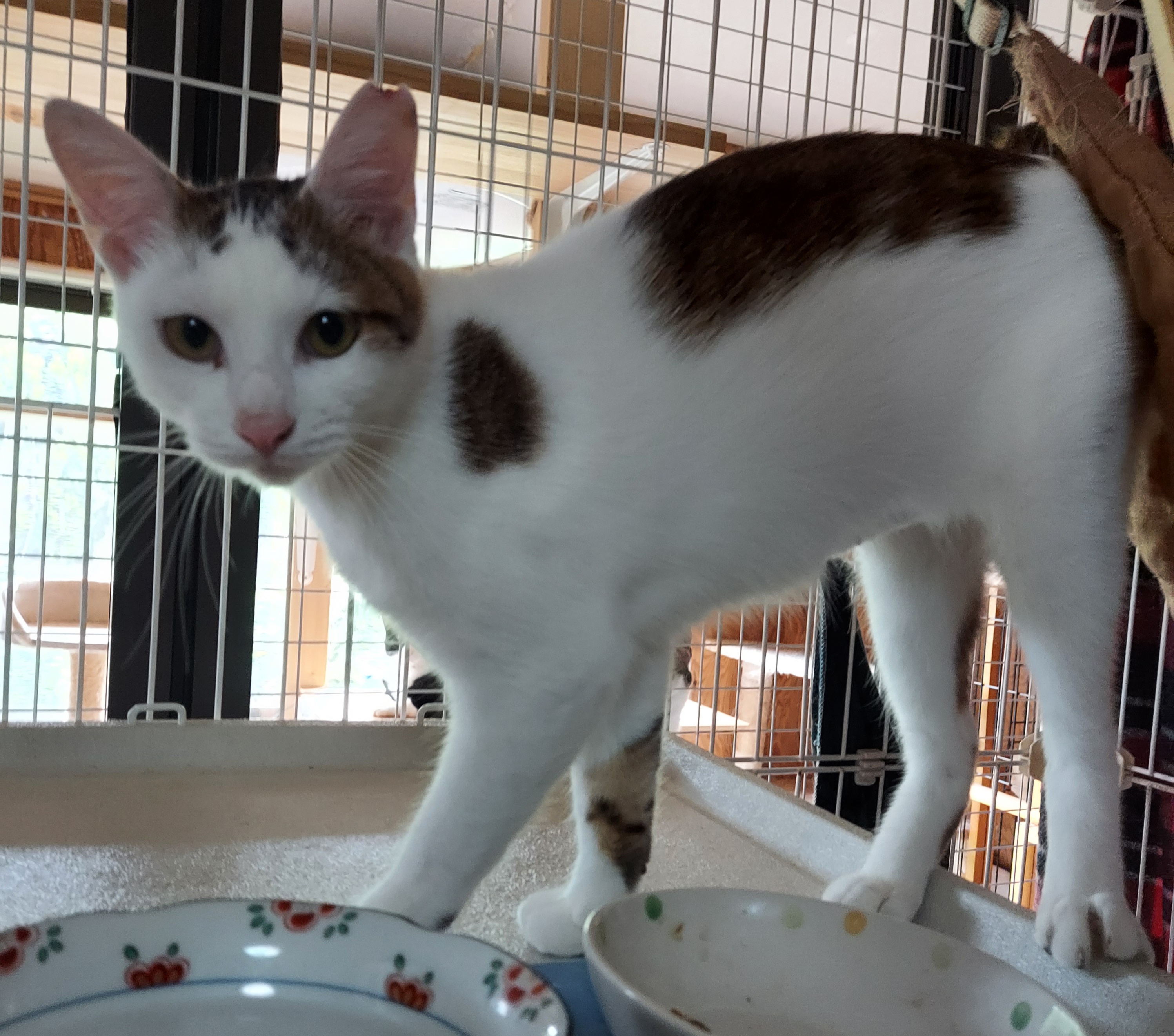 避妊去勢手術を終えて食欲モリモリ、少し大きくなった?豊君に華ちゃんです。