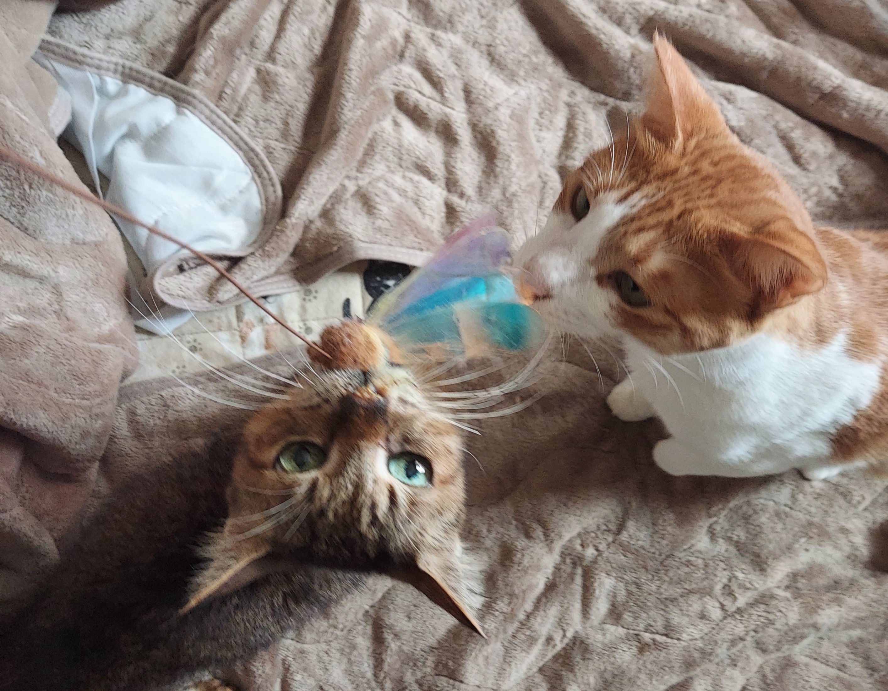 お見合いに行くのに、小ゲージを置いて自分から中に入ってほしくてじゃらしで遊んでみましたが
