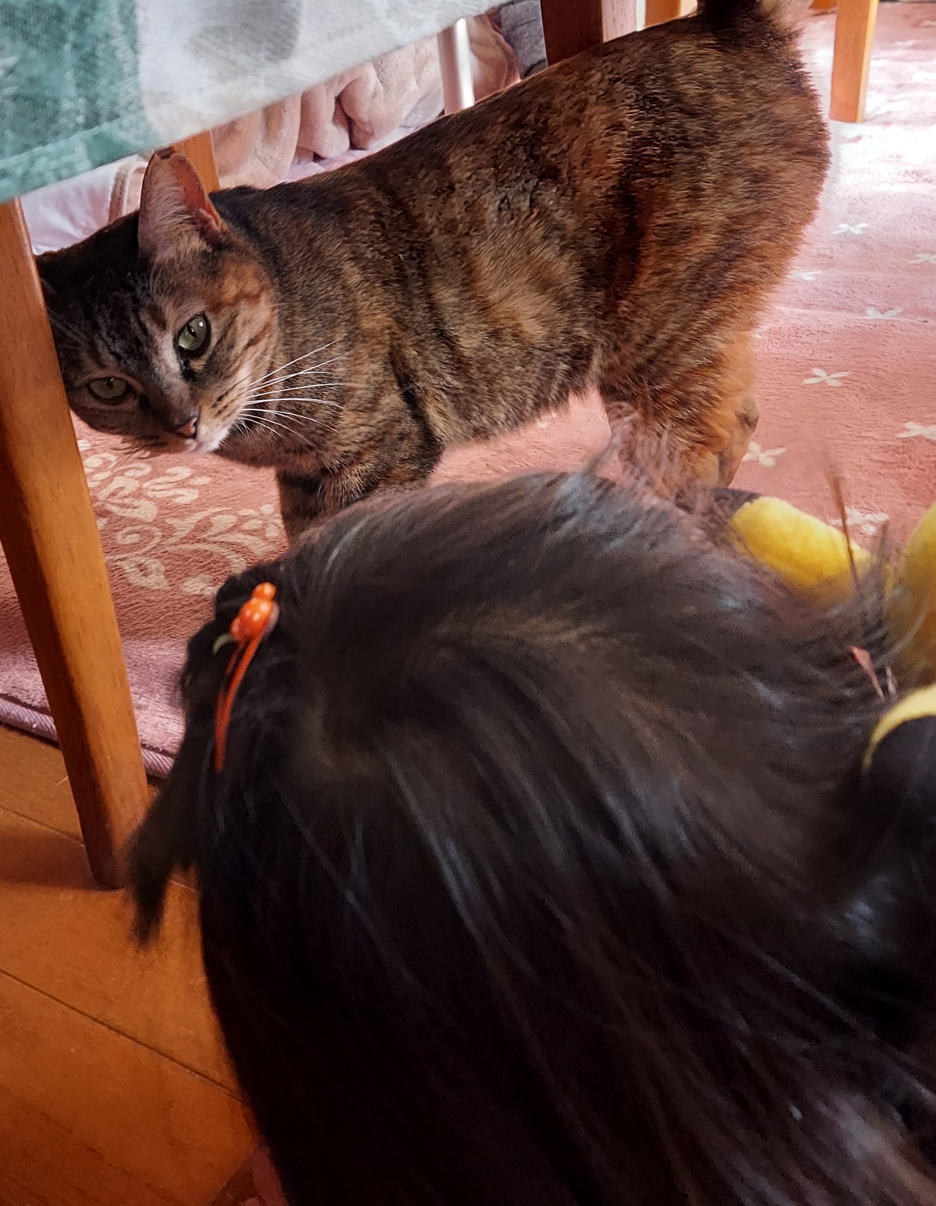 シャーシャーしていたのんちゃんですが、ミニ怪獣にしょうがないわねと我慢してくれました。