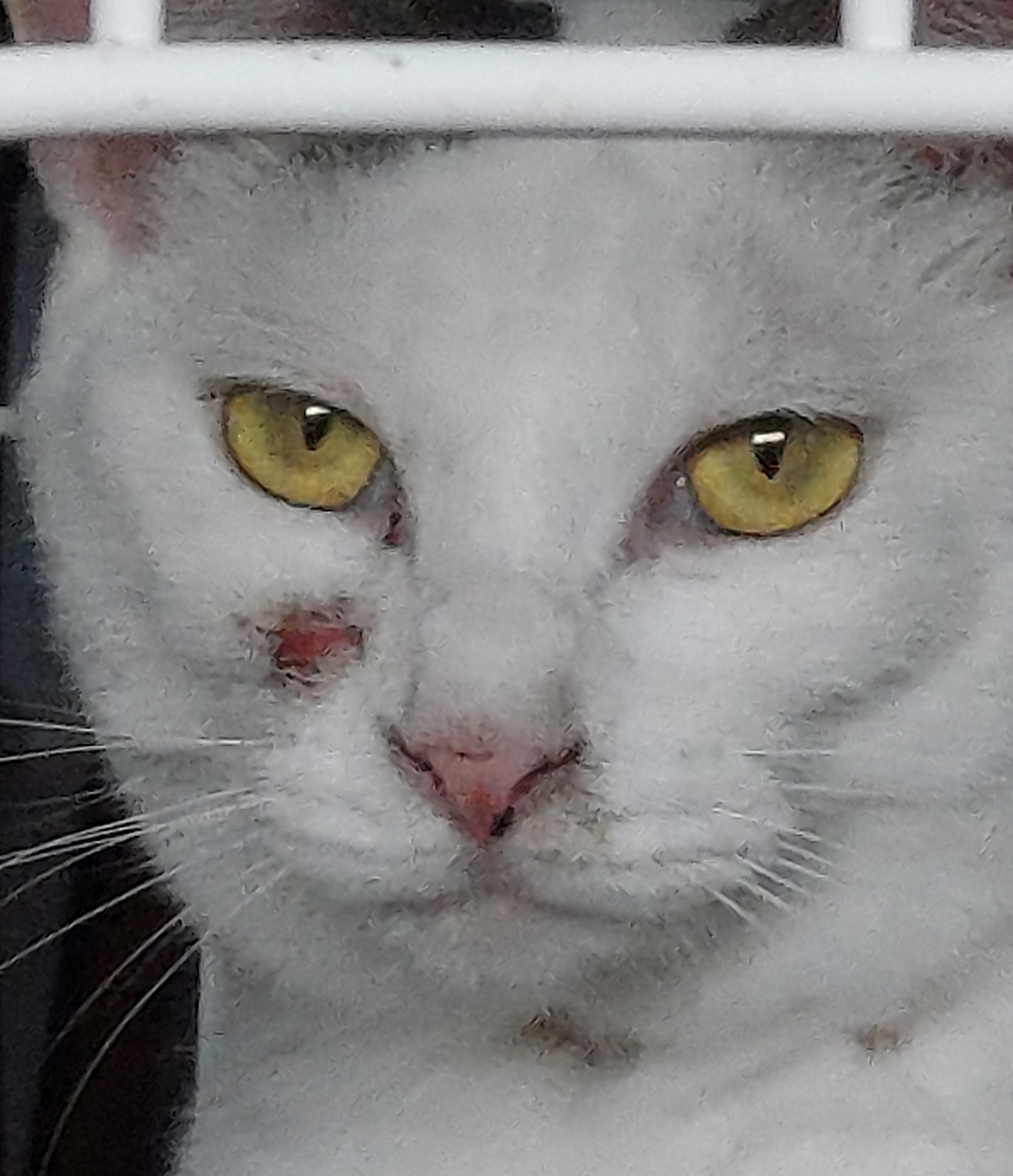 このまま自然治癒は難しいと考え、網と洗濯ネットでシャーシャーするさわこさんをじわじわと時間をかけて捕まえて病院へ連れて行きました。