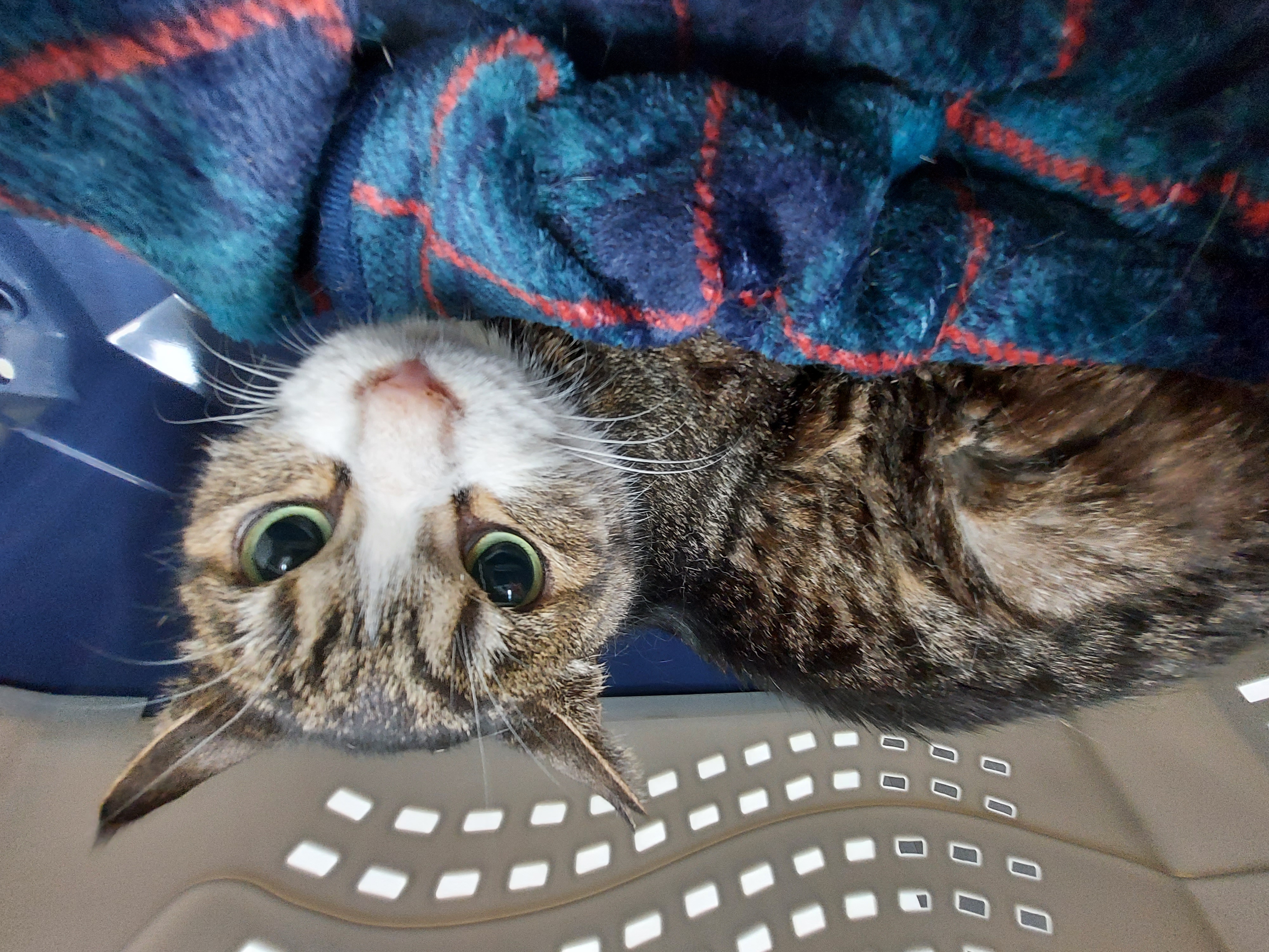 耳ダニ? 何かの病気?を疑いケージ内に入れていた小ケージに入ってくれたので診察に行きました。
