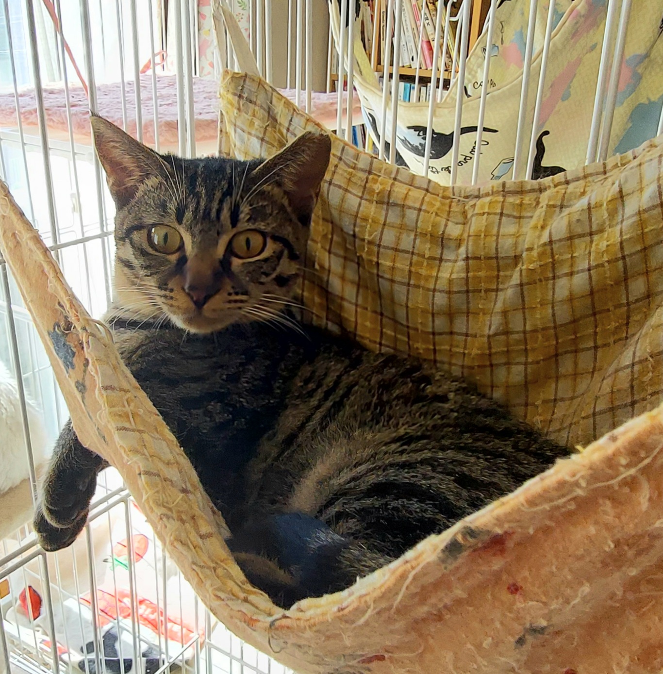 保護猫部屋には家庭内野良となった4にゃんと甘えっ子に変身したあかりちゃんがいます。