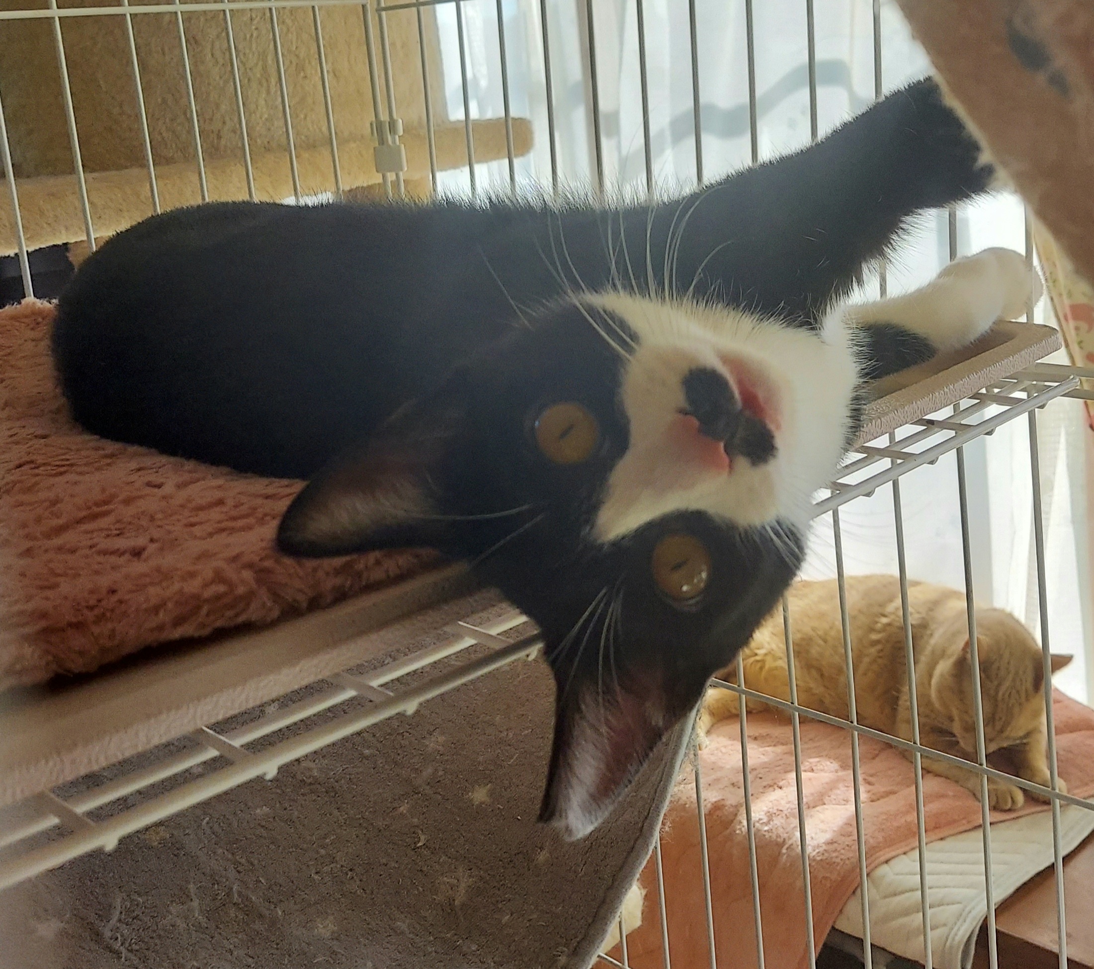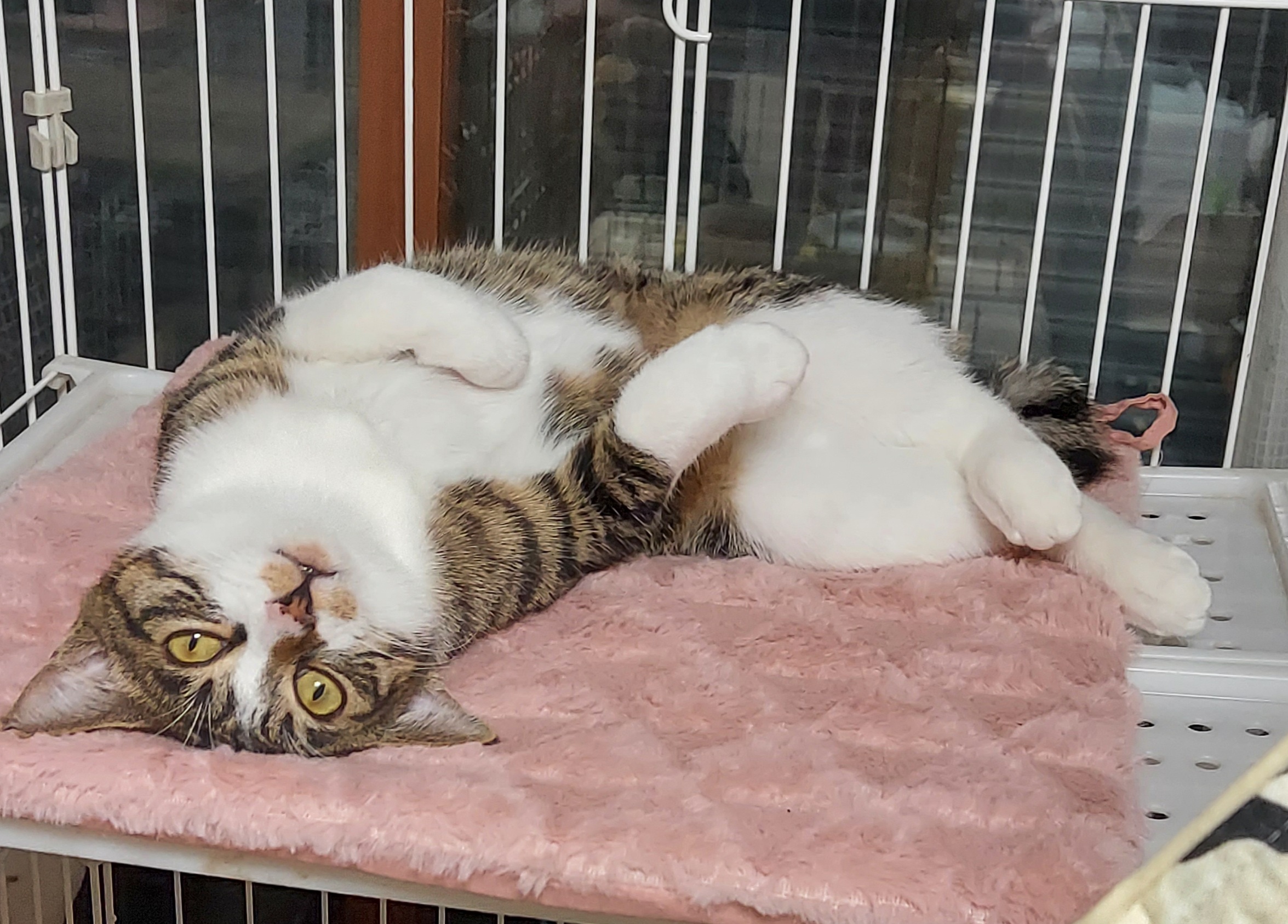 トライアルに行ったのですがくしゃみをする、うちの先住はワクチン打っていないんだからって里親さんに返されて以来、こちらで暮らしています。