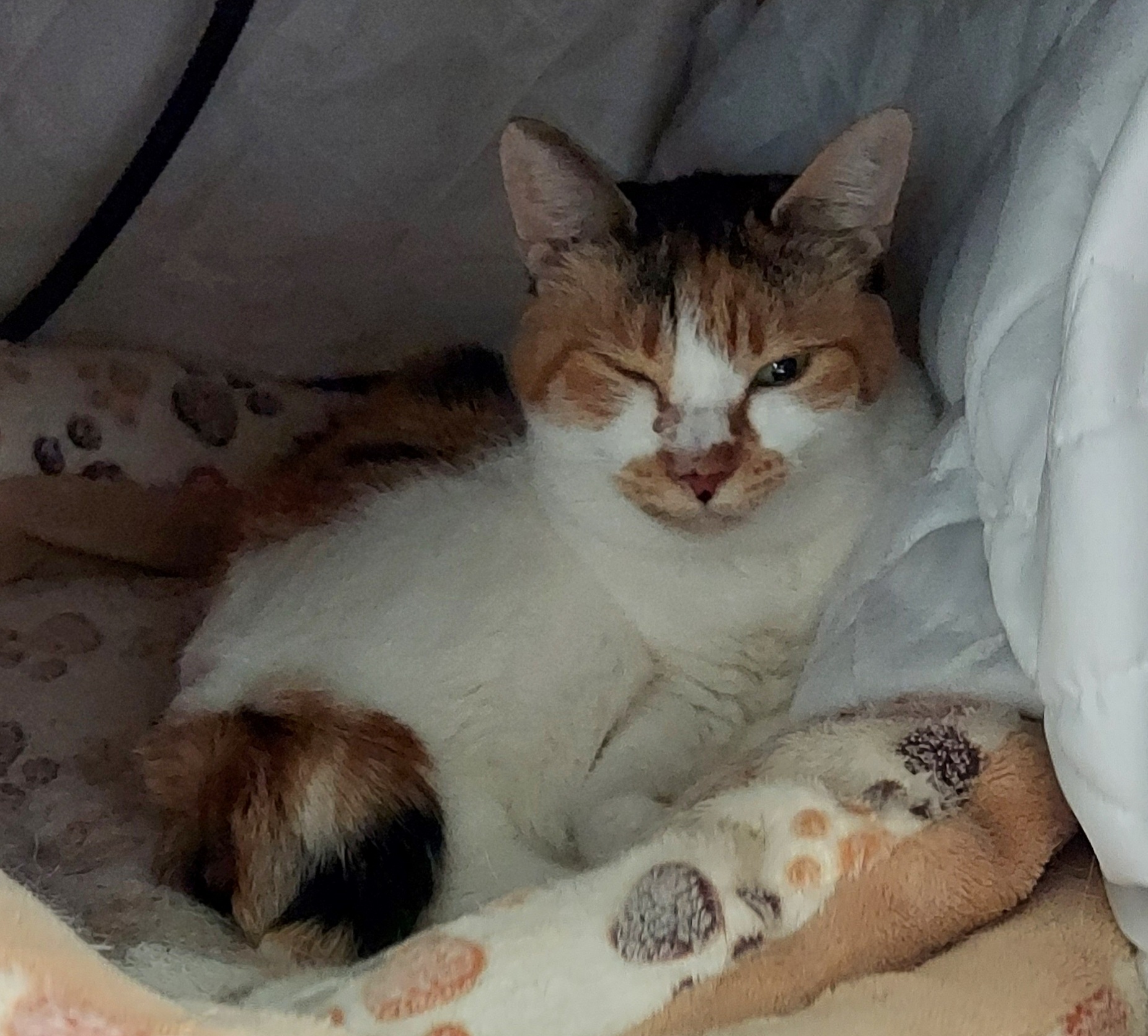 どこでどう生きてきたのかわからないのですが、偶然にも子猫の保護で出会ったのですからお腹いっぱいで幸せなまま暖かく快適に、やがては向こうに逝ってくれたらと思います。