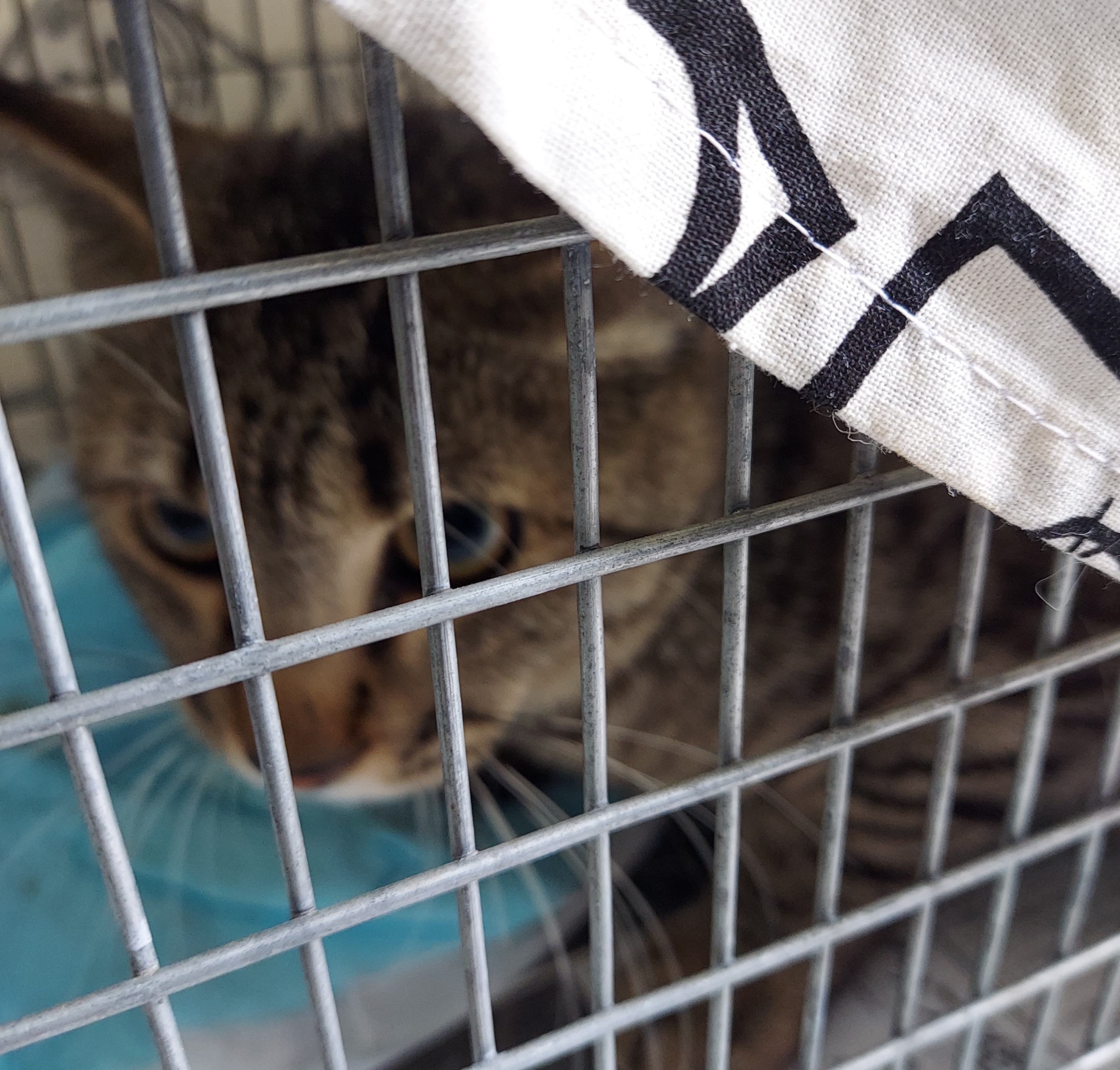 エサやりさんからの依頼で捕獲予定だった3にゃんのうち、昨年秋生まれの兄妹2にゃんの捕獲が出来病院に搬送しました。