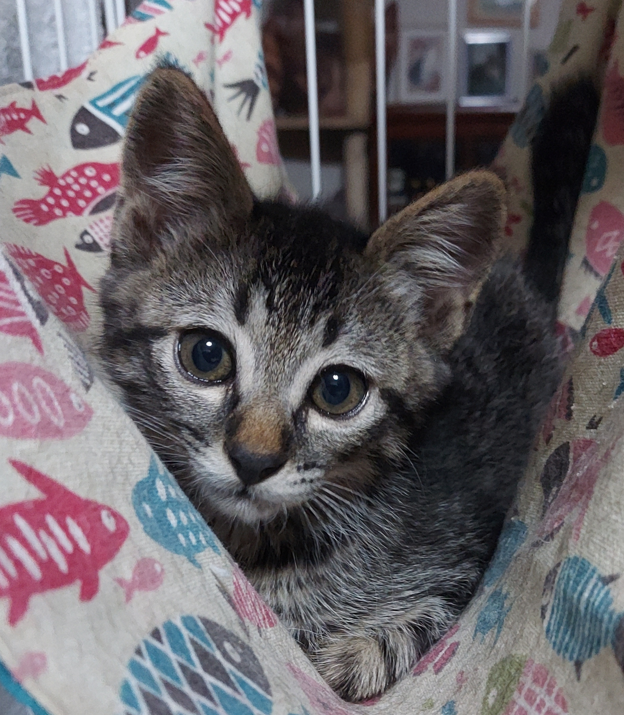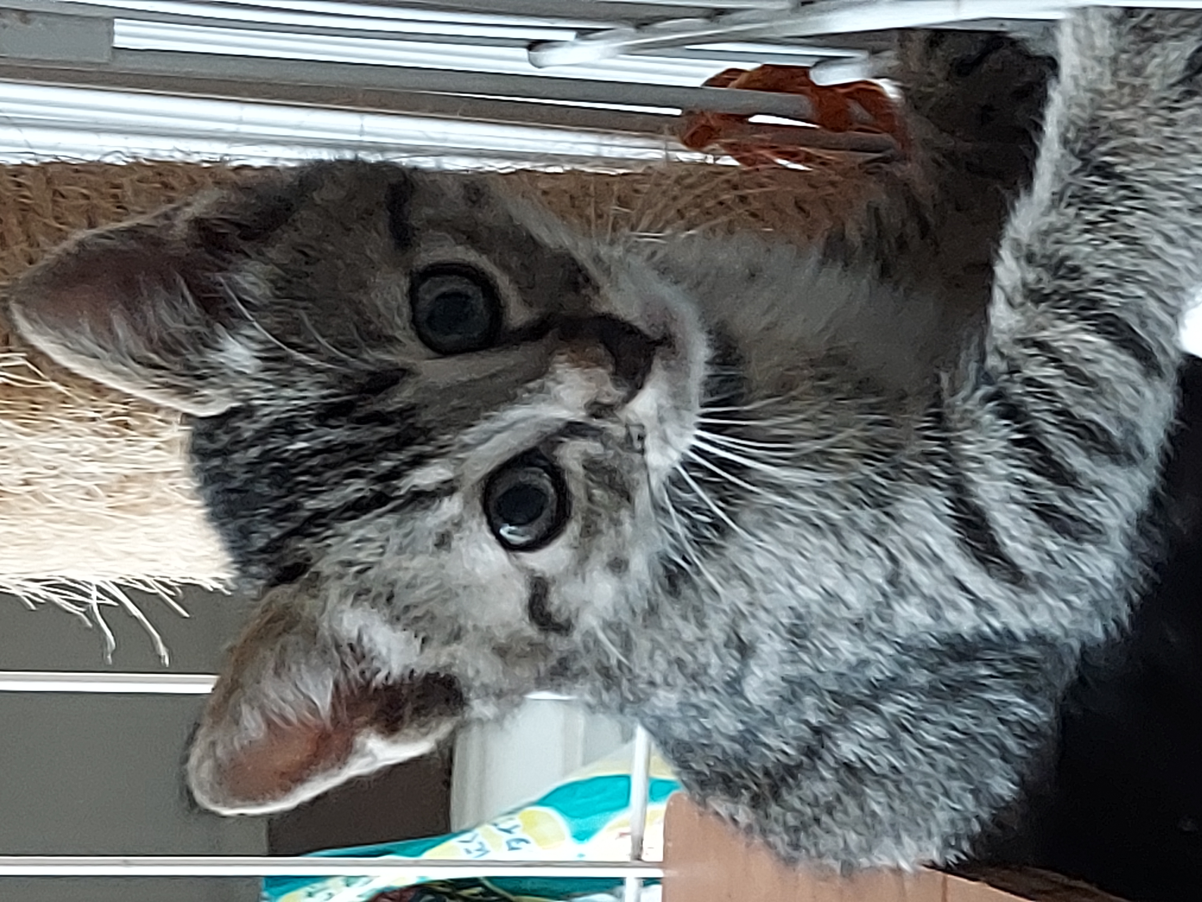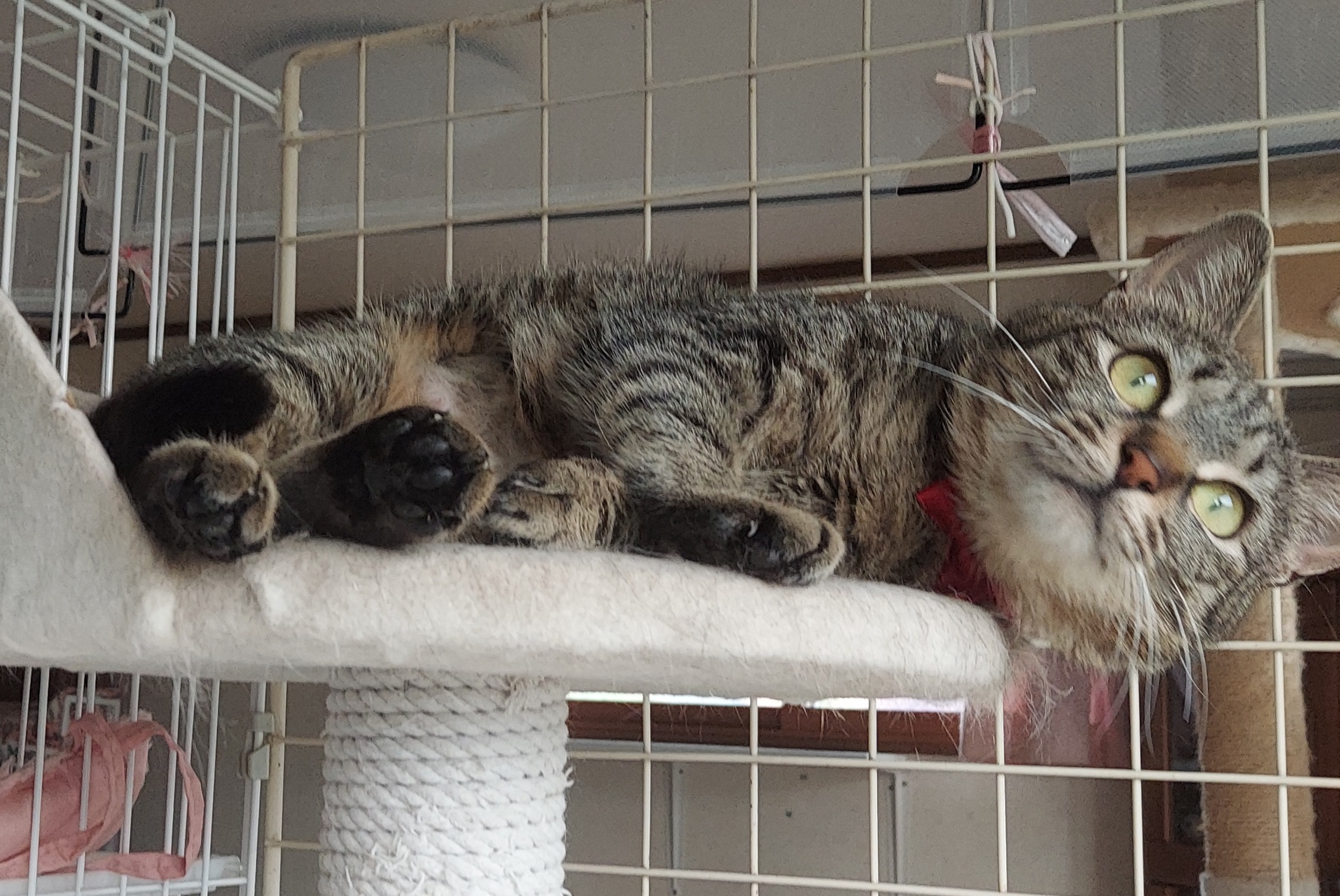 朝いつものように座った私の膝の上にのってきたので、しばらく抱っこしてから置いたままの小ゲージに入れました。