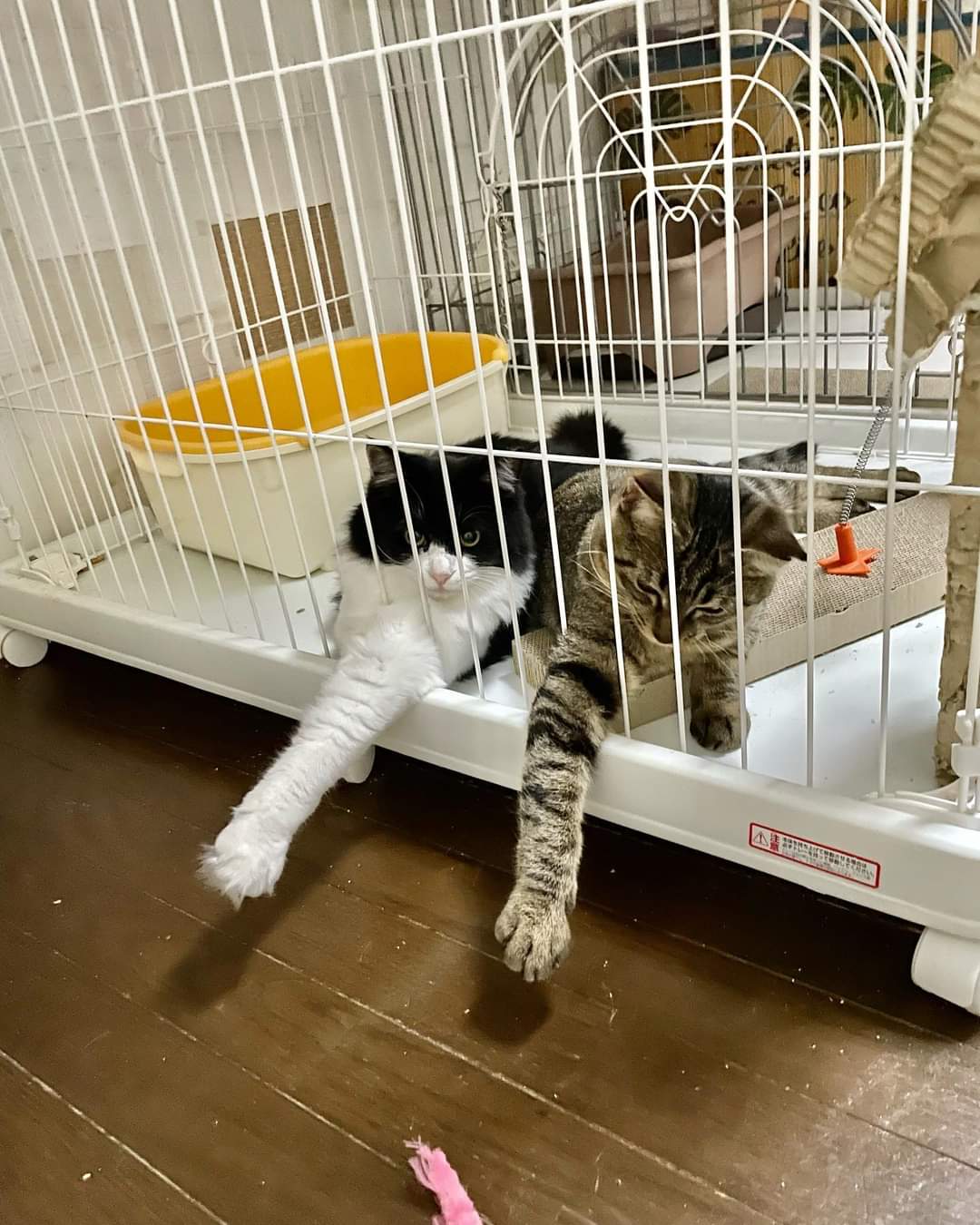 わちゃわちゃとケージの中でソフトに遊び