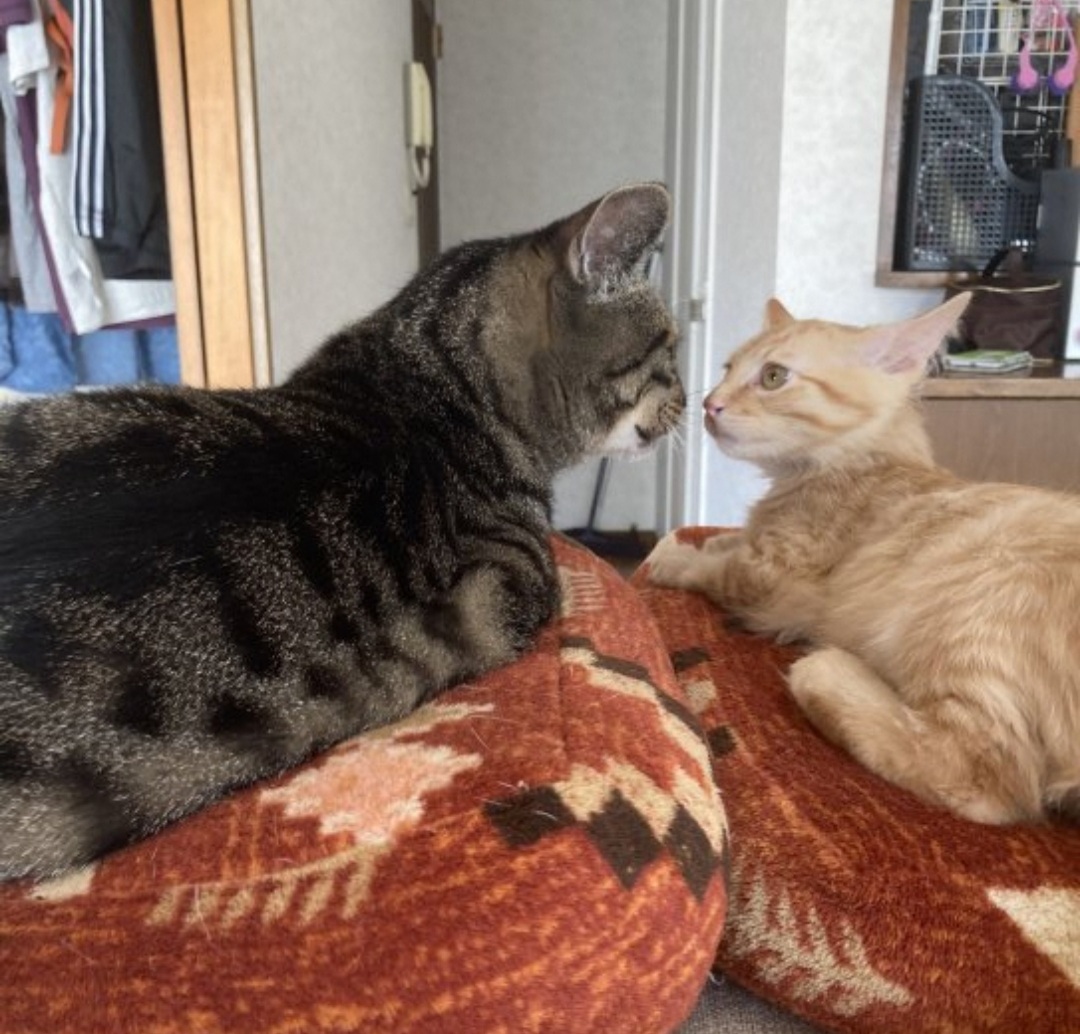 なぜか子猫に人気の琥珀兄さん。