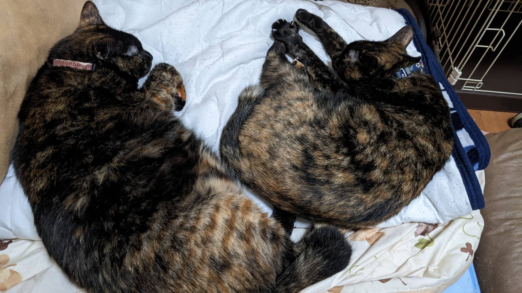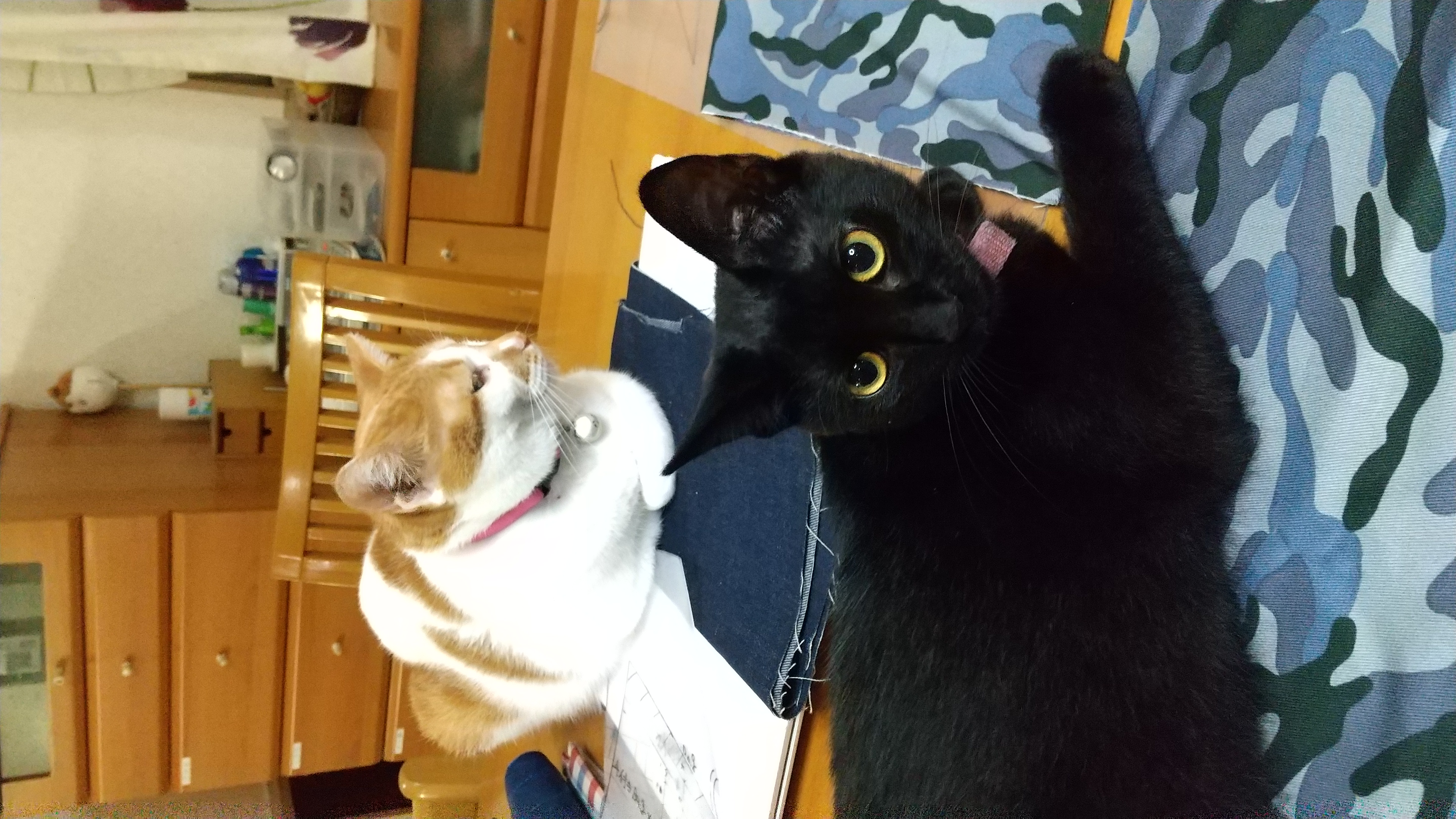 女子同士色々あるようですが、時にはこんな感じ?? あったかい場所争いの最中のようです(笑)