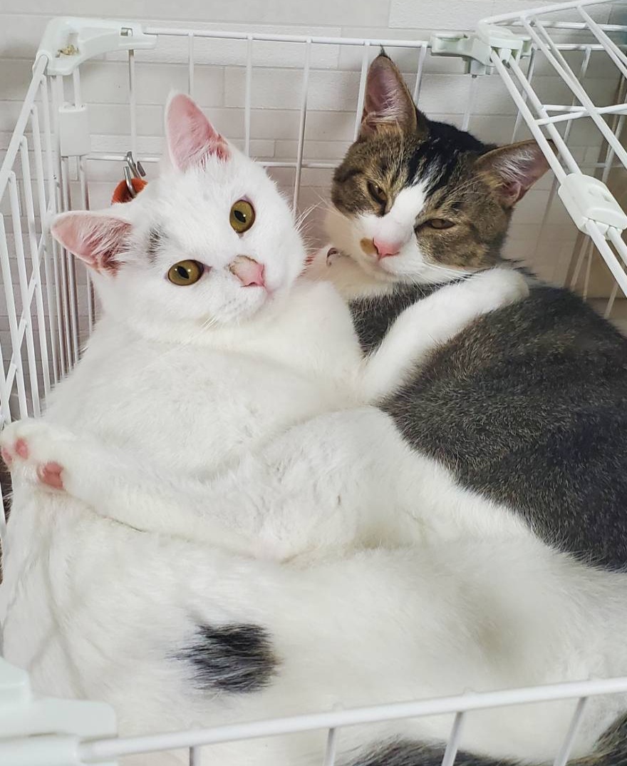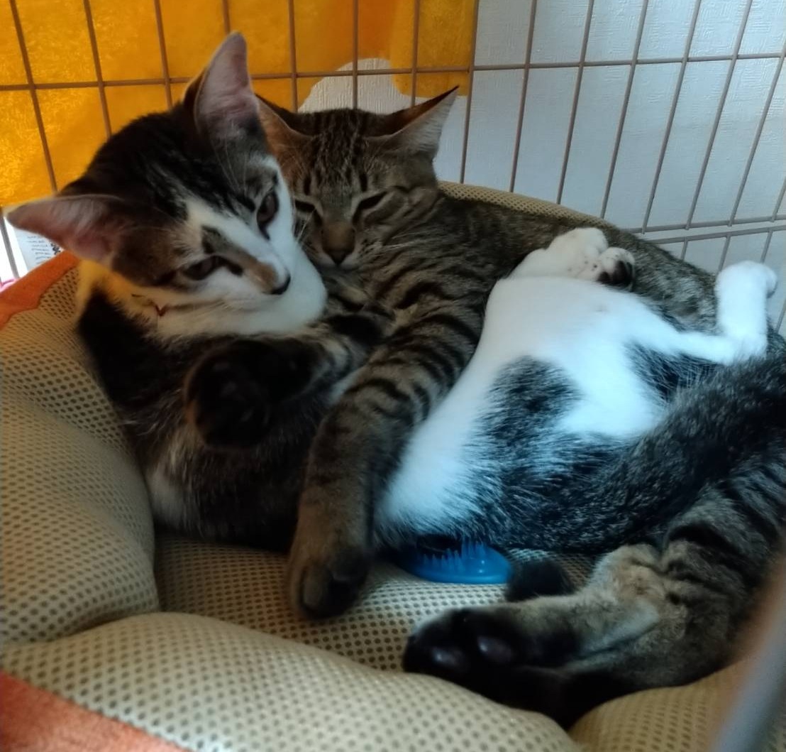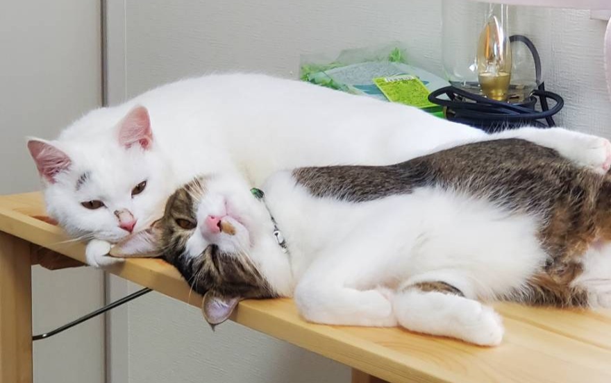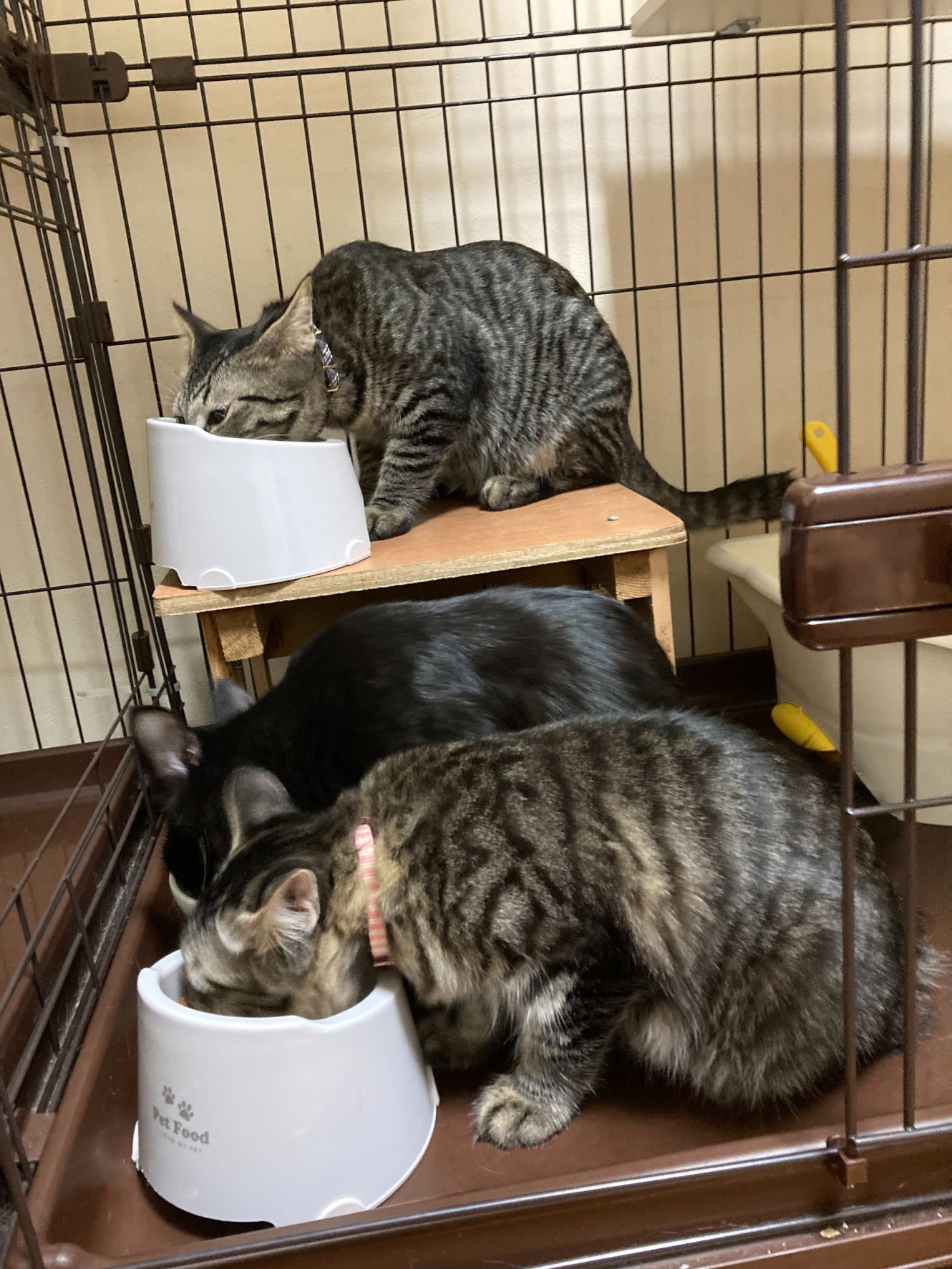 バスのボンネットに入り込んだところを保護されたあかぎちゃんの避妊手術で朝ご飯を絶食の時にはなんとポン太くんがあかぎちゃんに連れ添って一緒に絶食したそうですよ! なんて感動的!!