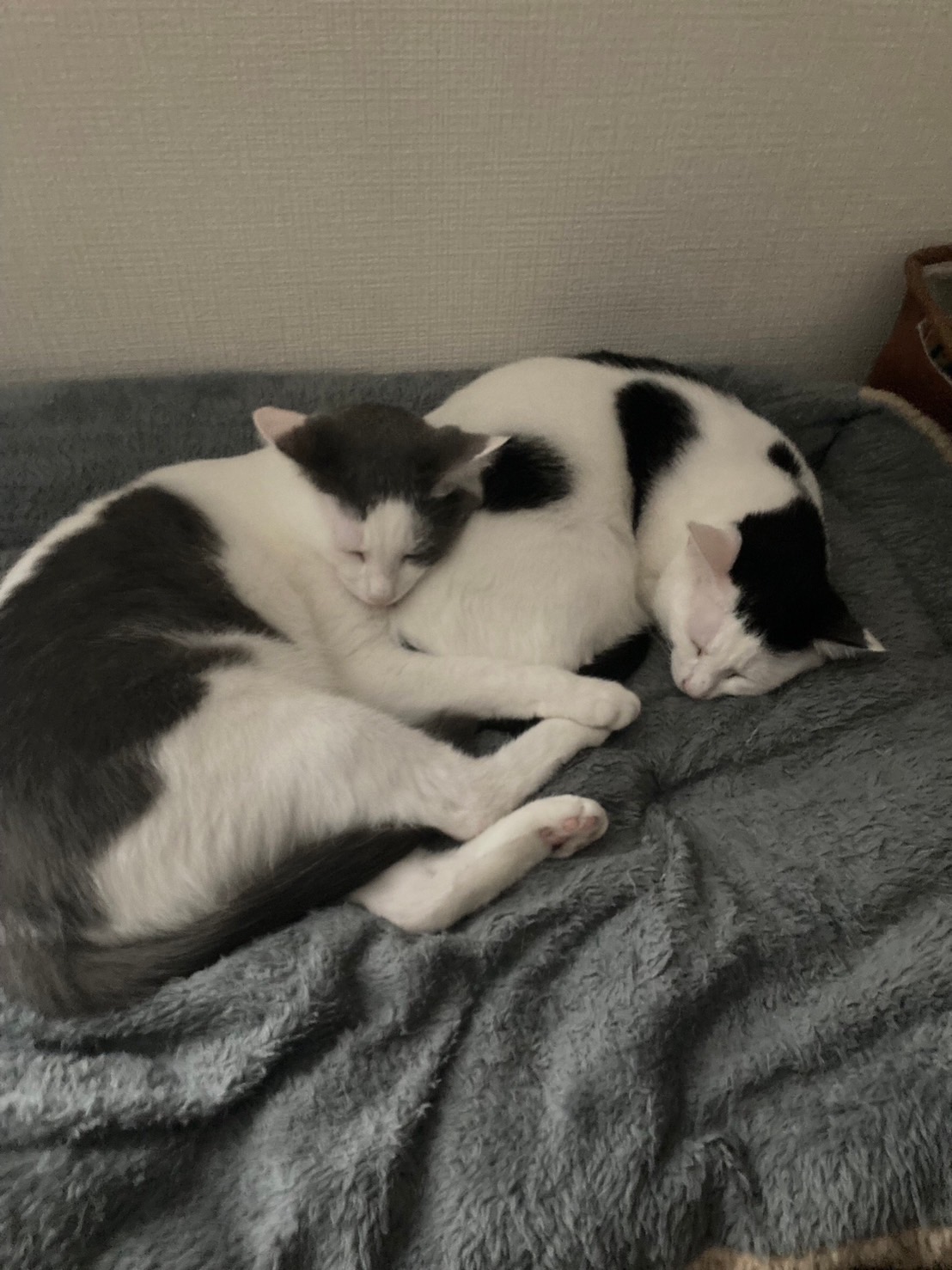 週末に正式譲渡手続きに伺うしょうへいろこ改めおかかくんにしらすちゃんです。