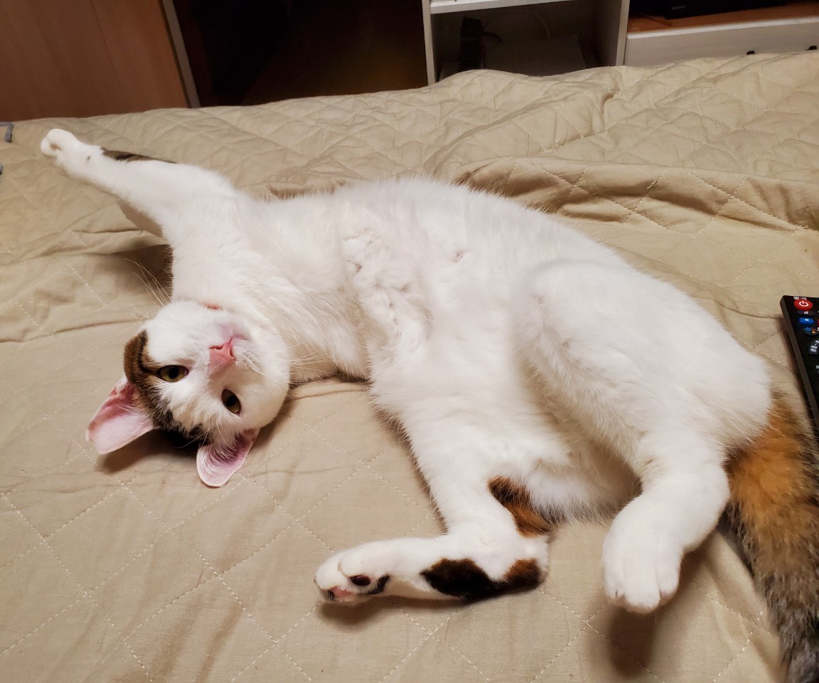 ビビりっ子でしたが、こんなに寛いで幸せに暮らしています。