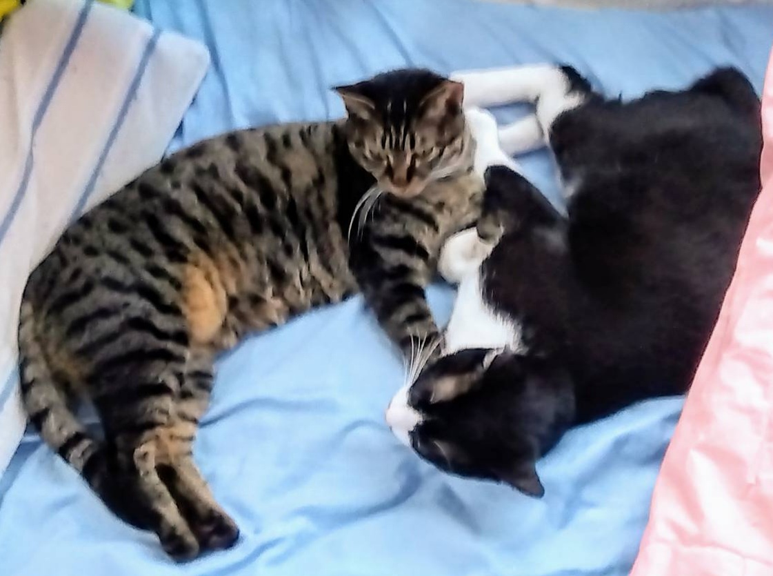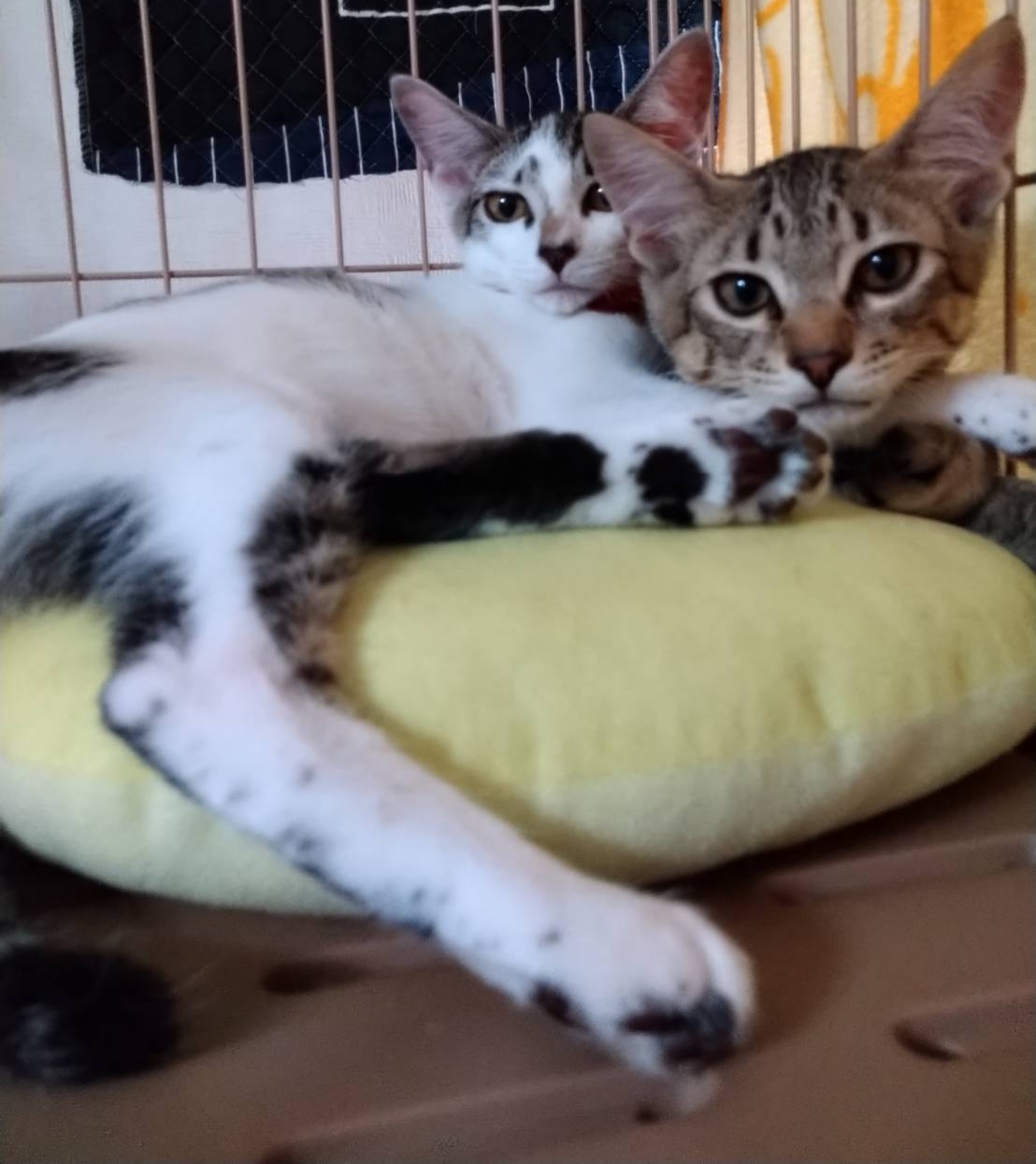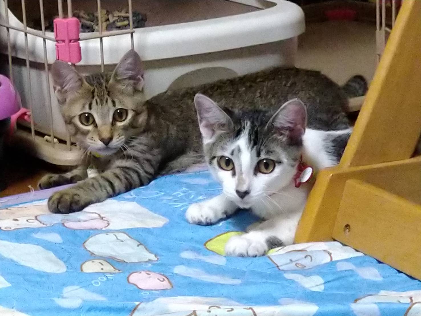 はるたくんにももたくん、兄弟ではないけれど子猫の時から同じゲージで育ちました。