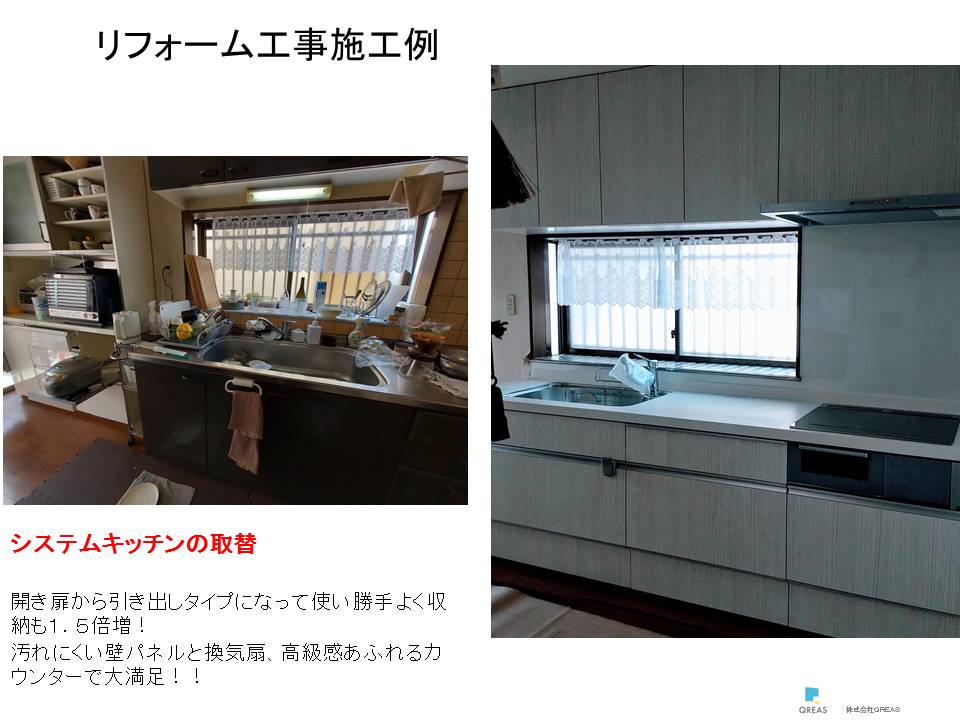 例えば お掃除が楽なシステムキッチンにするリフォーム工事