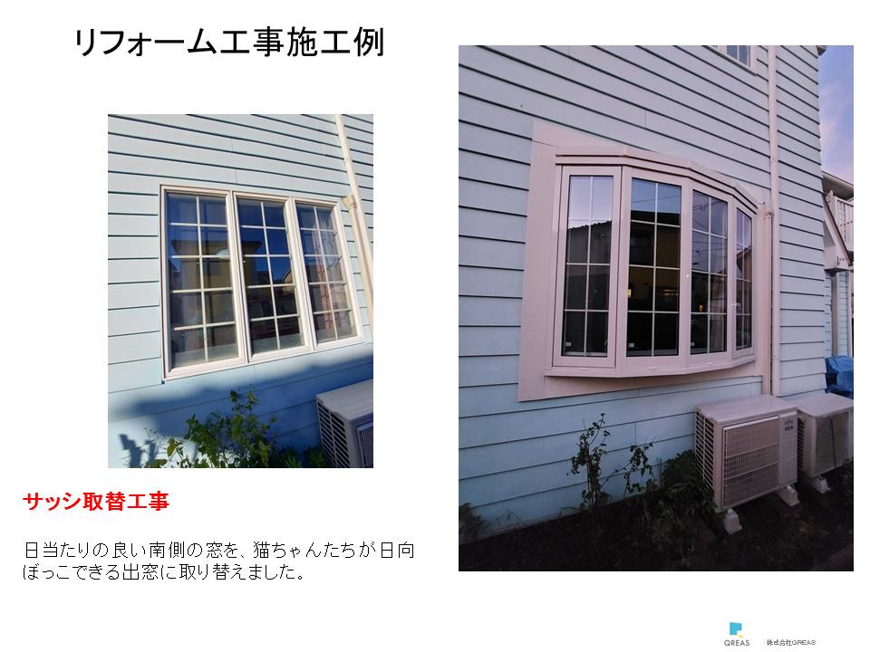 にゃんこたちがお外を眺めてくつろげる窓取替リフォーム工事