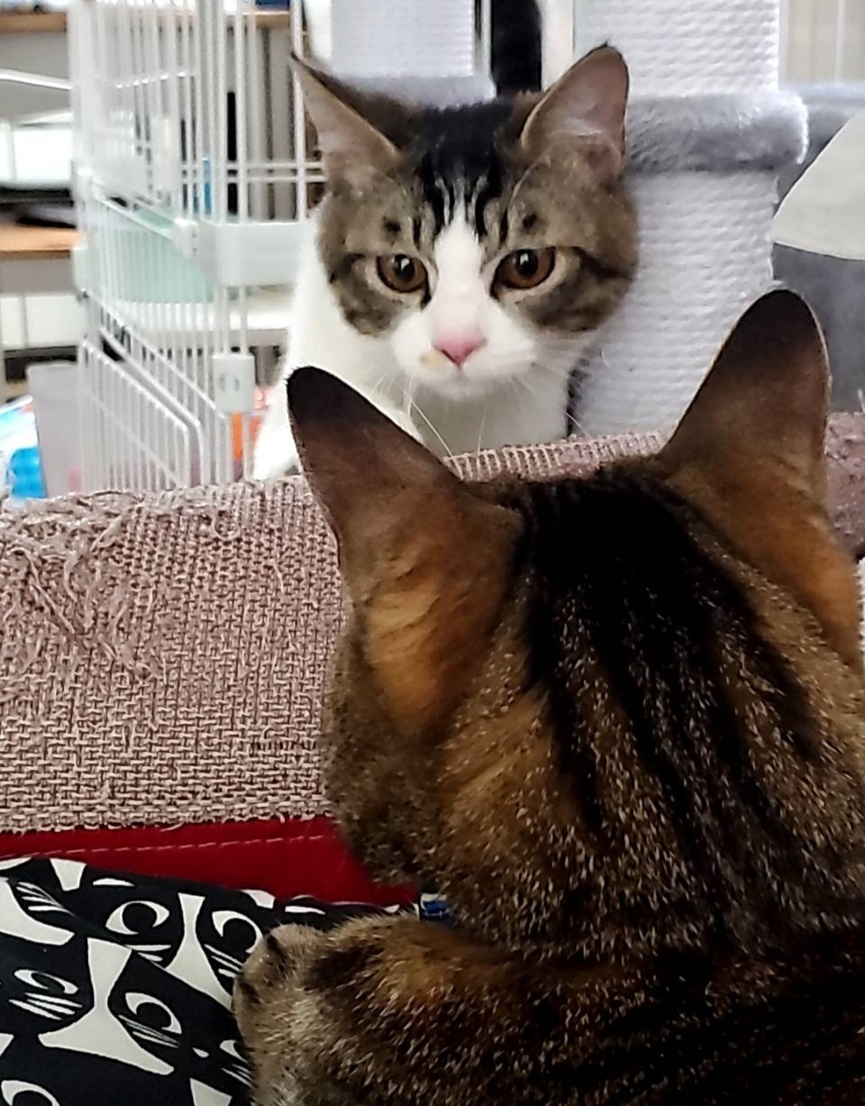 まだ緊張している様子ですが、とっても素敵なご家族+2にゃんがいますからだいじょうぶ!!