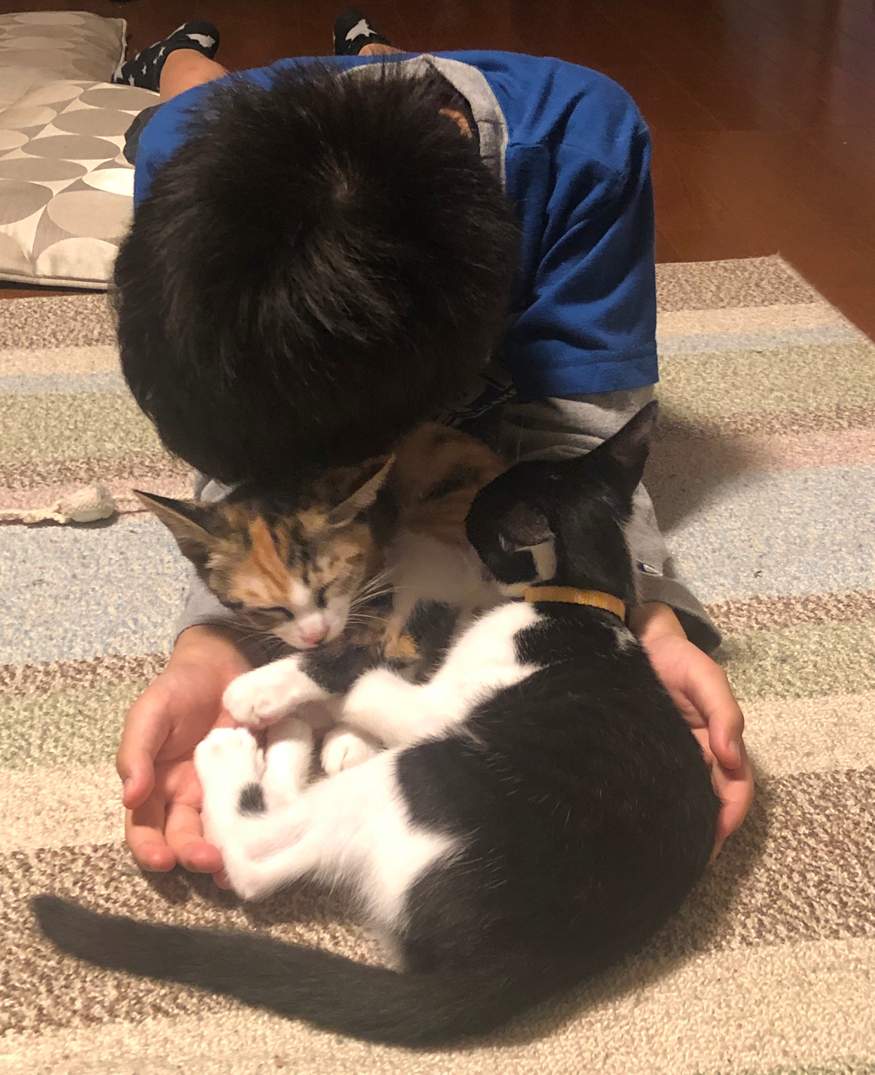 あんずちゃんはまだ抱っこはできないようですが、ゆず君は一緒に寝るんですって!!