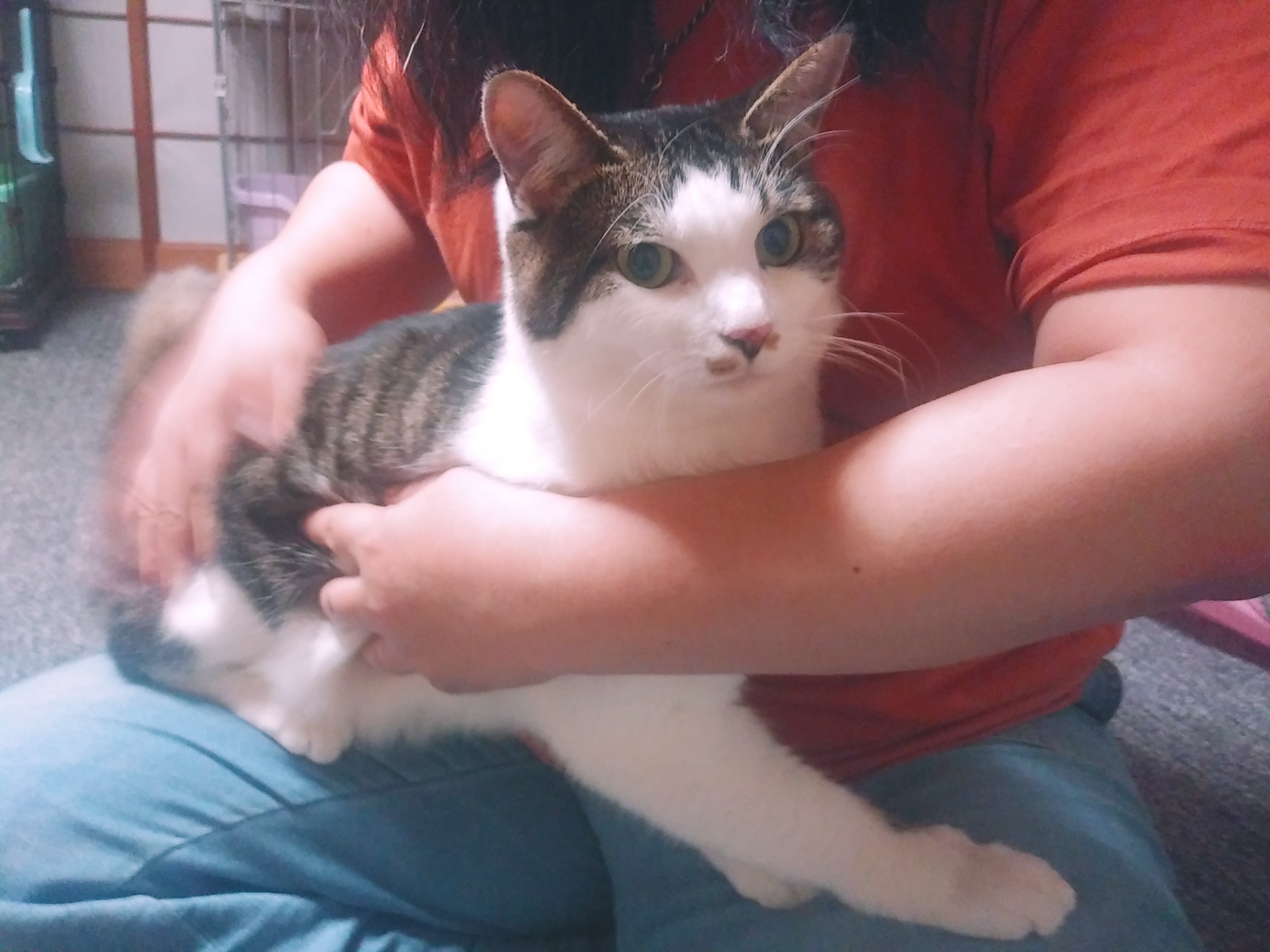 トムがいなくなった寂しさを埋めてくれるかのように、抱っこさせてくれるようになったむぎ。