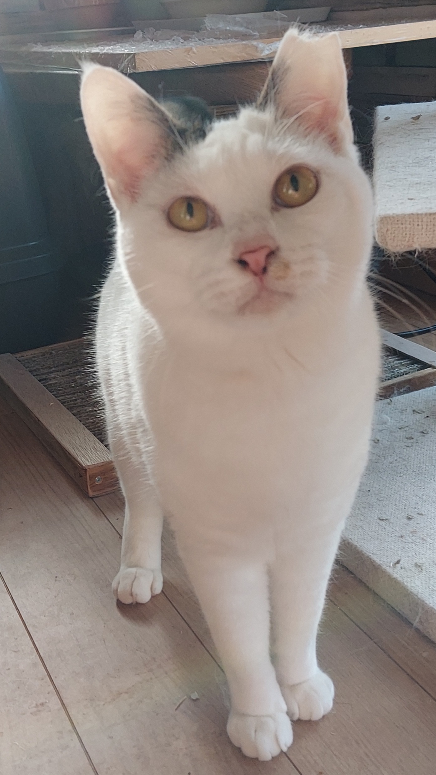 かりんちゃんの性格ならもう少しで撫でたりできそうなんですが、一緒に遊んだりちゅーるでおやつタイムしたりすれば進展ありかもです。