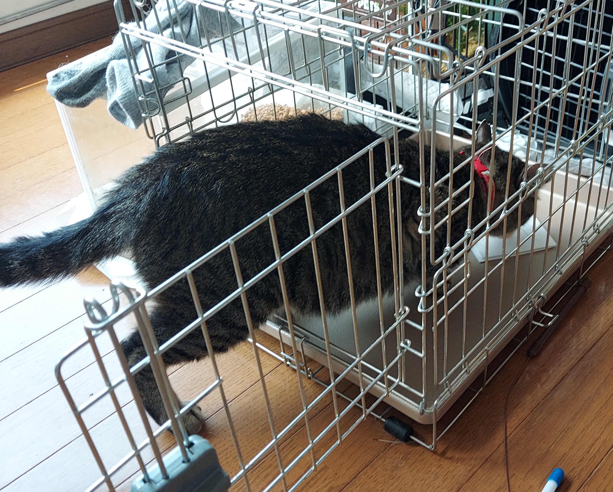あらかじめ数日前から小ゲージを用意して、中でちゅーるタイムを設け警戒心バイバイ作戦(笑)
