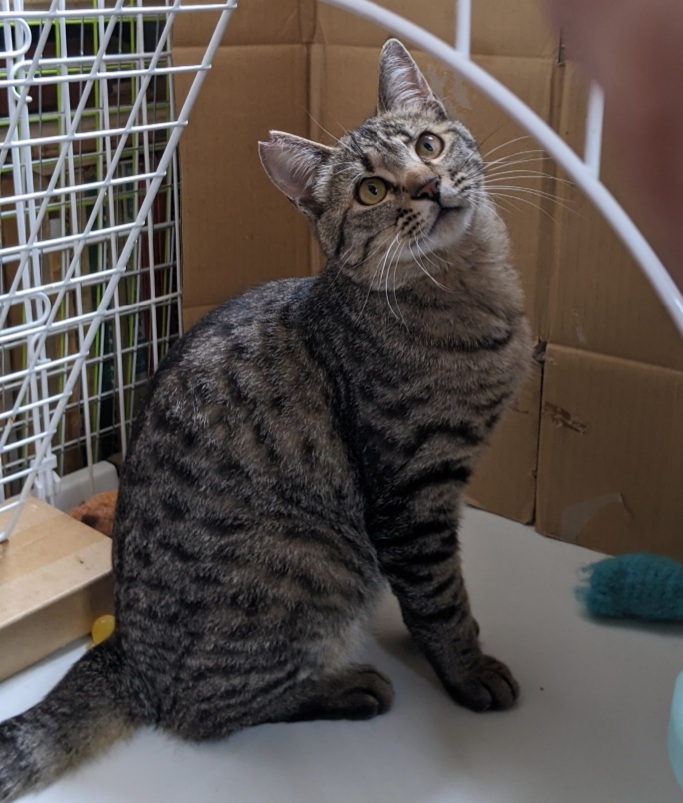 保護猫部屋のここみちゃん。人馴れはまだまだです。