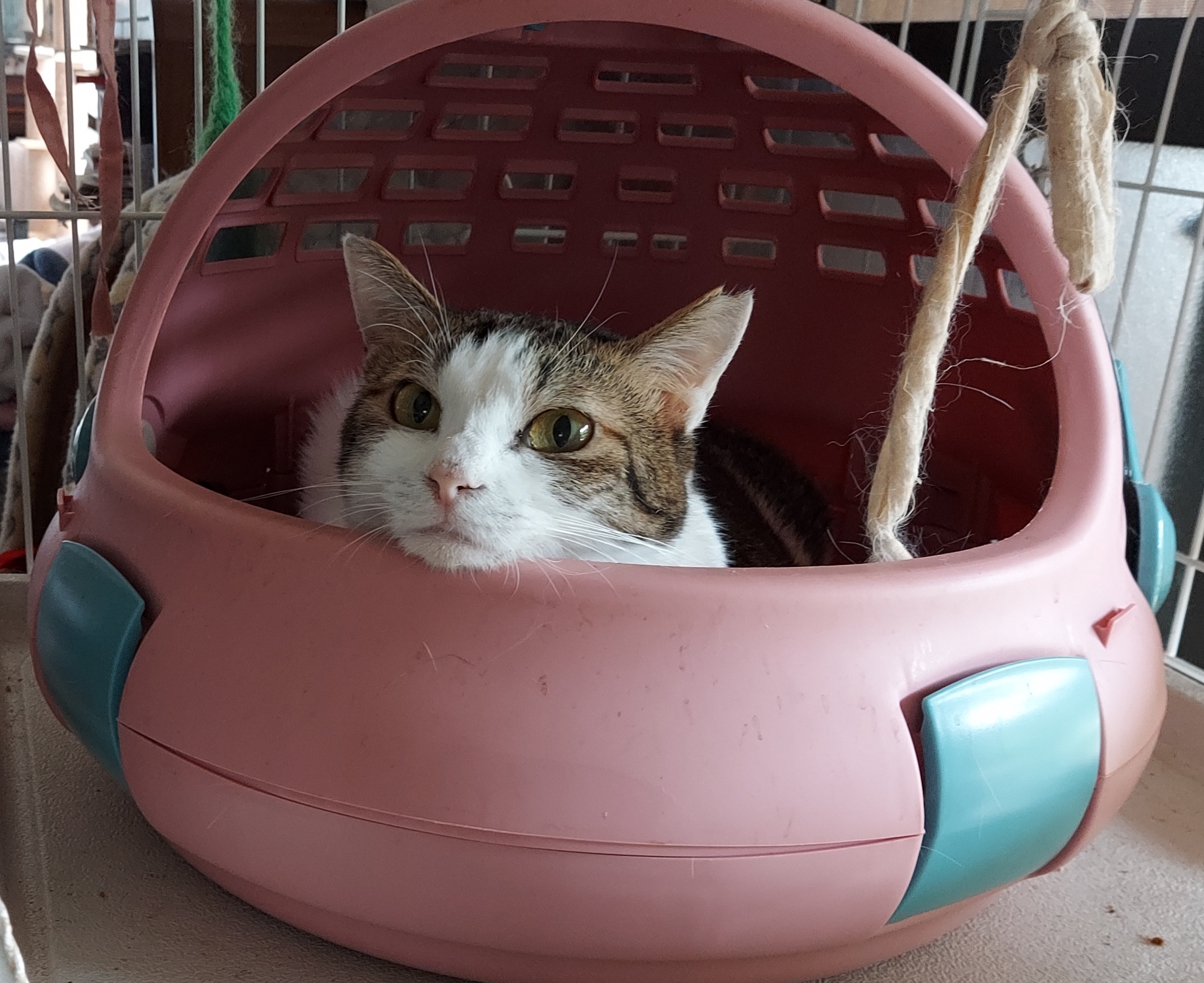 真菌の疑いありで他の猫への感染予防のため、リビング側のゲージに隔離していたかりん。