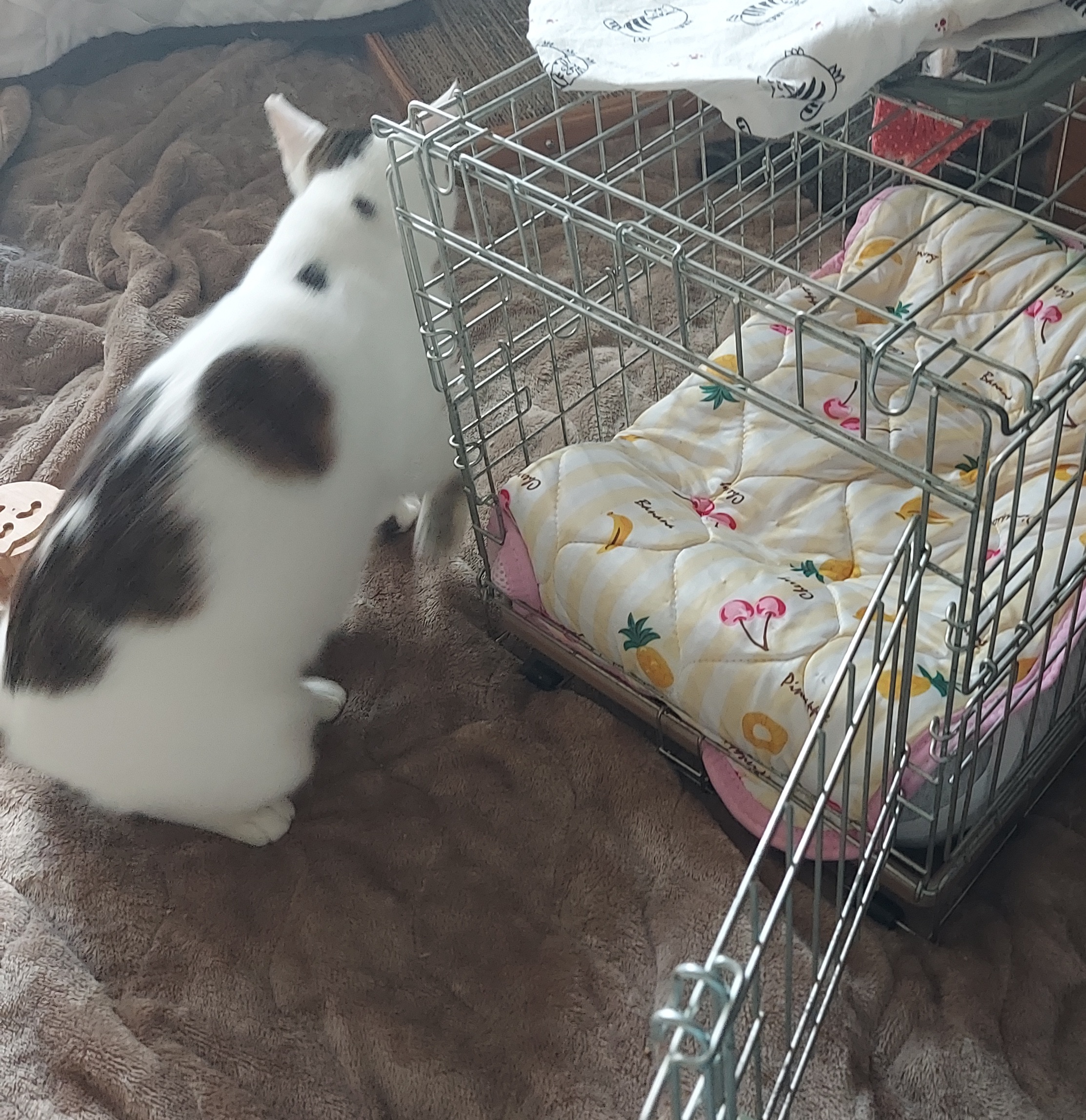 お見合いに行くのに、小ゲージを置いて自分から中に入ってほしくてじゃらしで遊んでみましたが