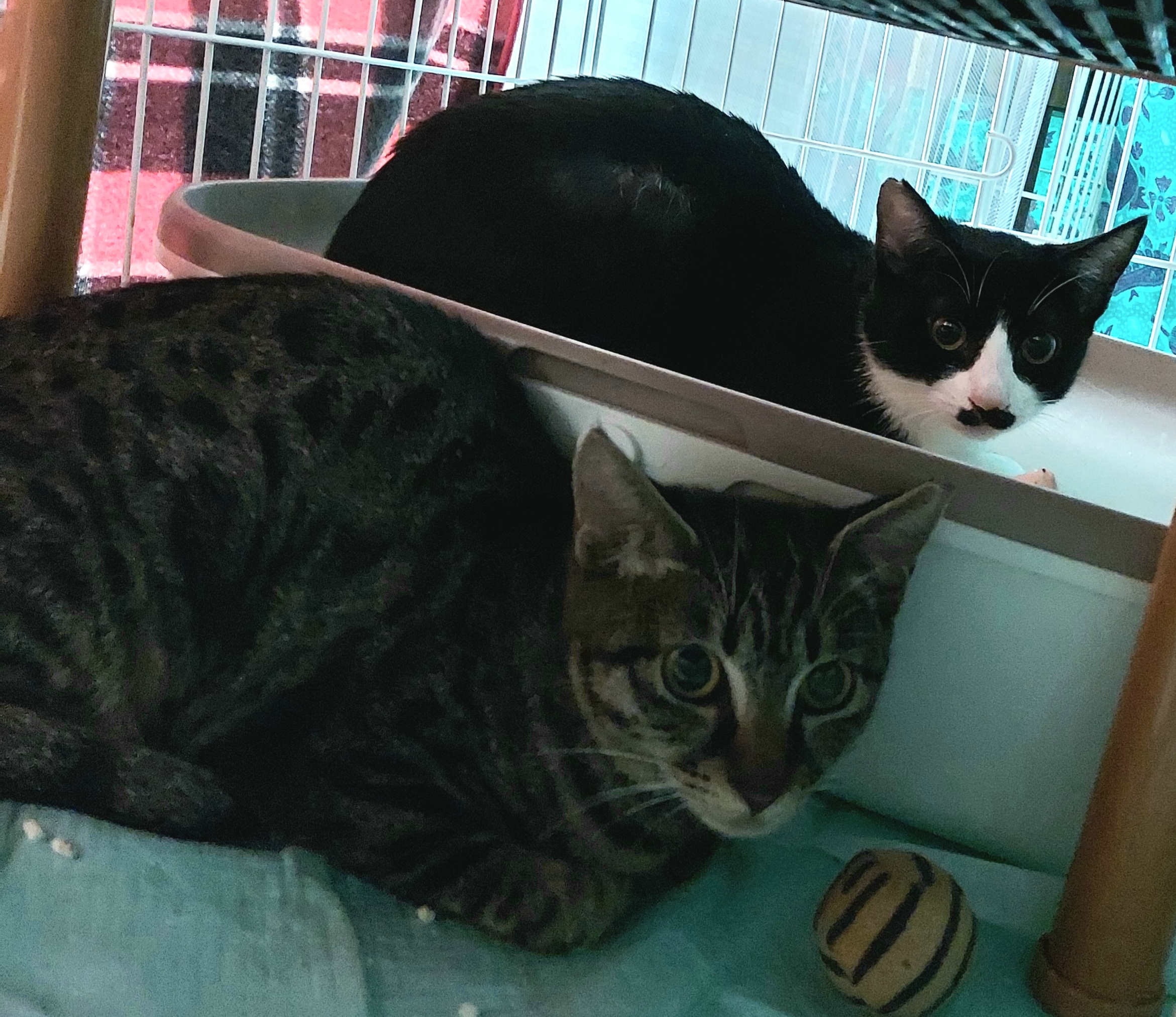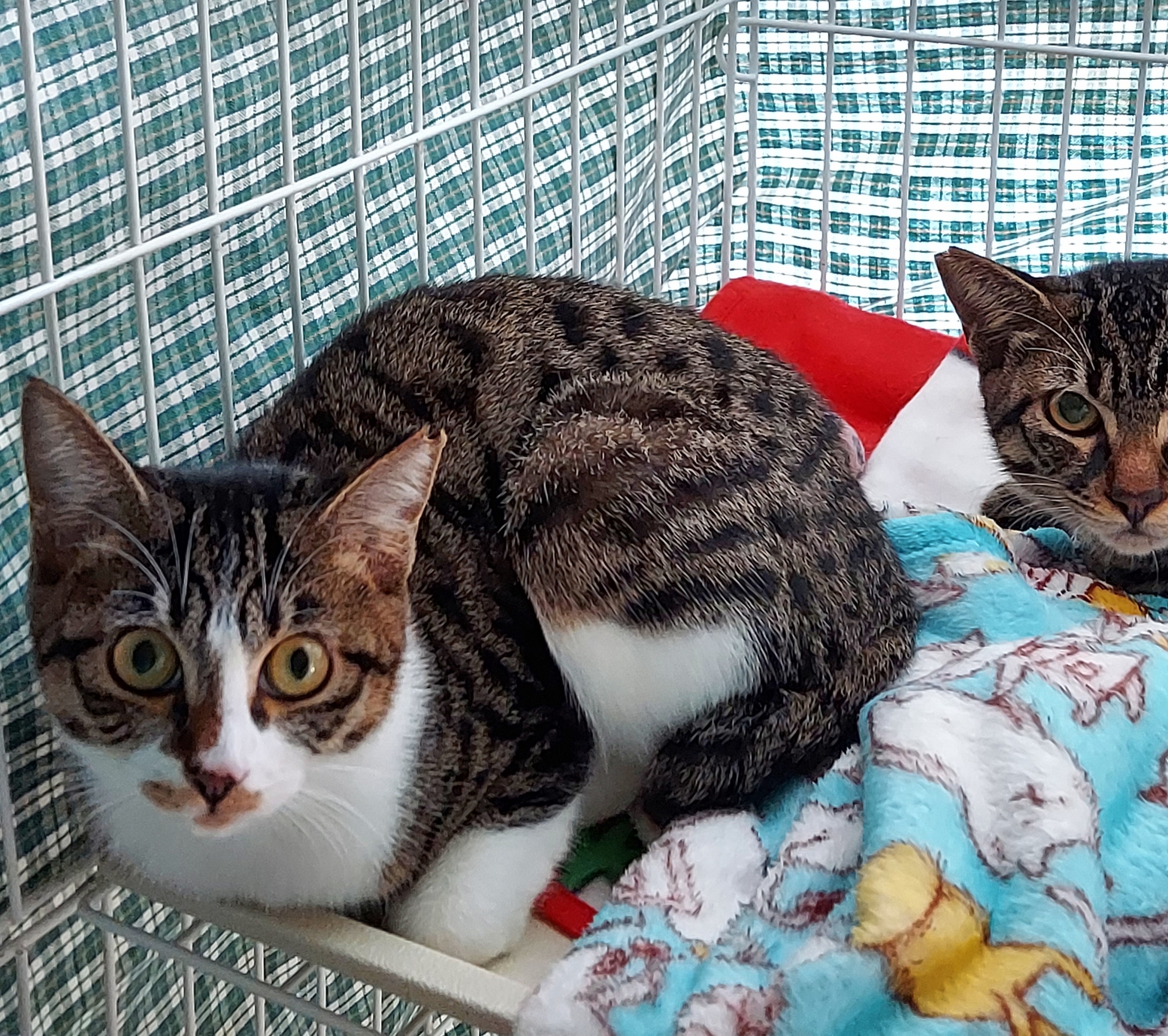 避妊去勢手術、ワクチン接種、ウィルス検査、爪切り、ブロードラインを5匹済ませて寝室の2台のゲージに連れてきました。