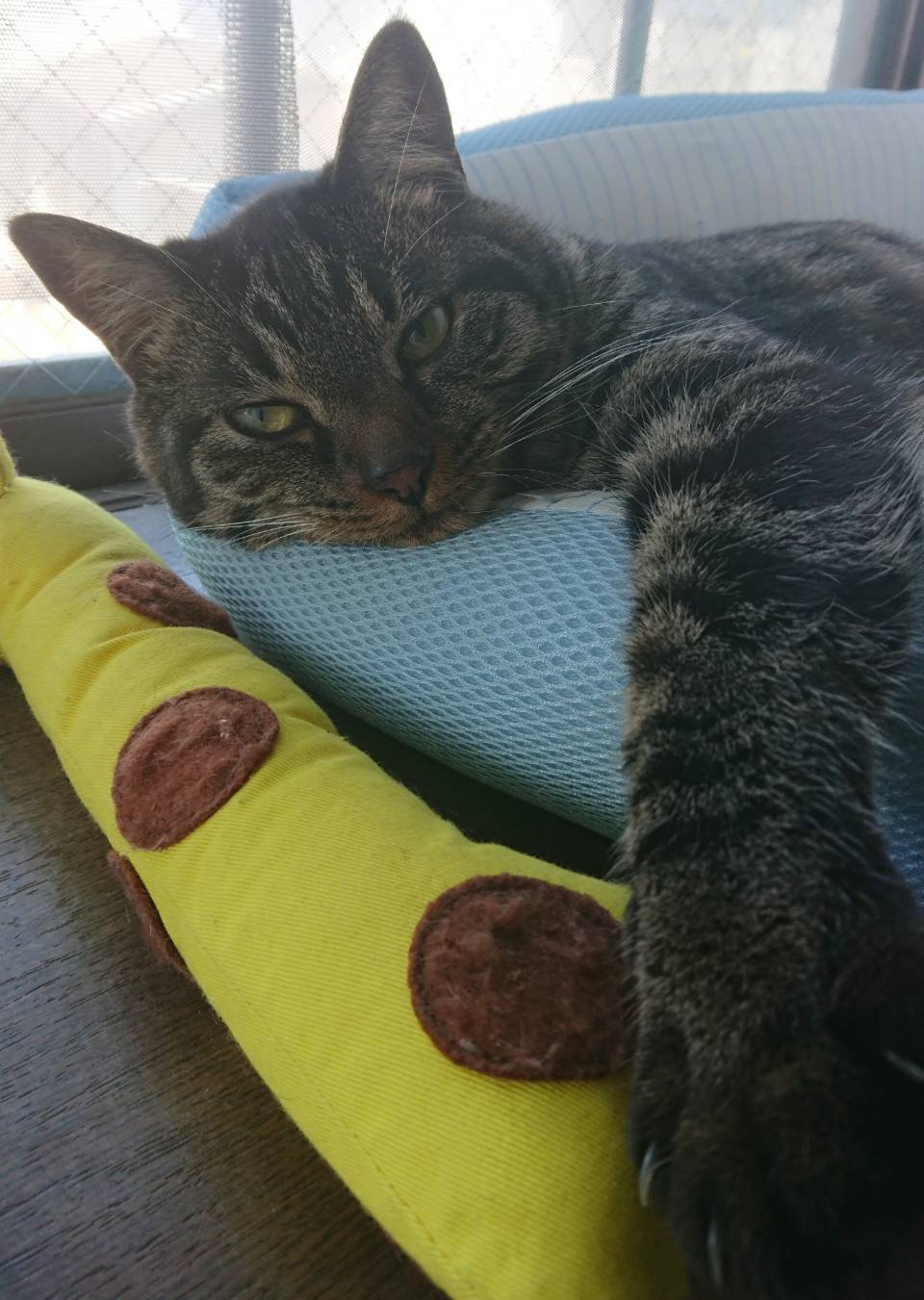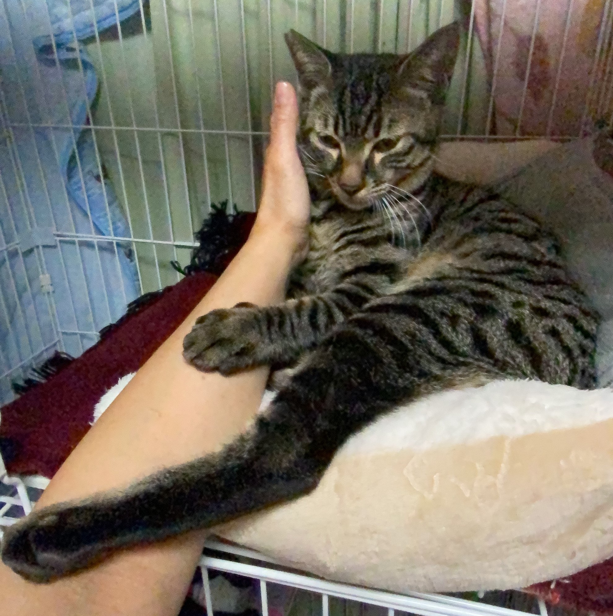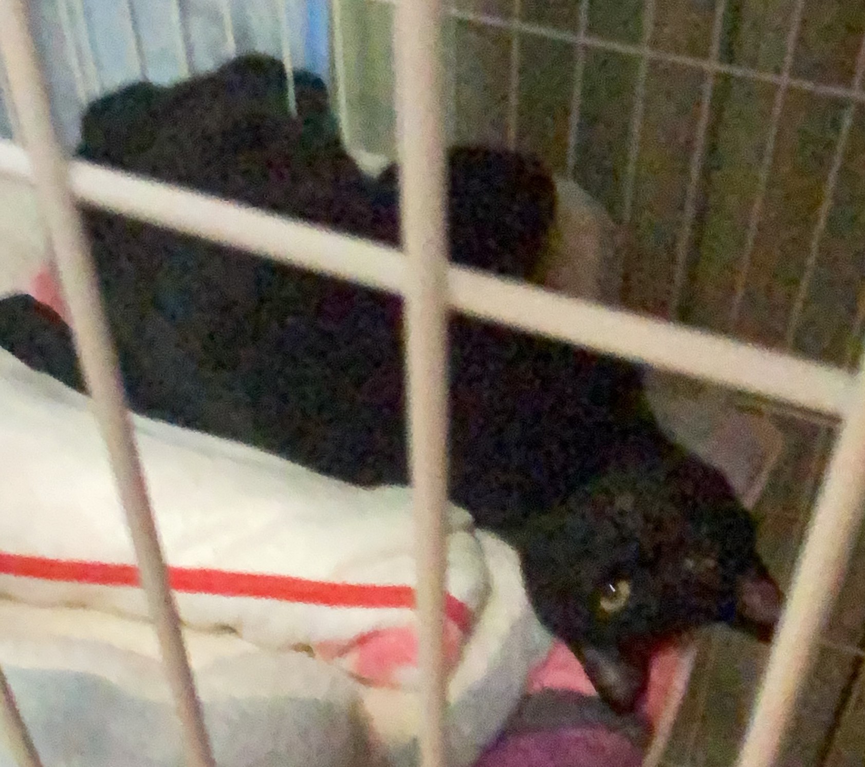 15日に保護した親子5匹のうちママのくらちゃんとがってんくんはエサやりさんのおうちに行きました。お貸しした3段ゲージで夜にはこんなにくつろいで甘えたそうです。