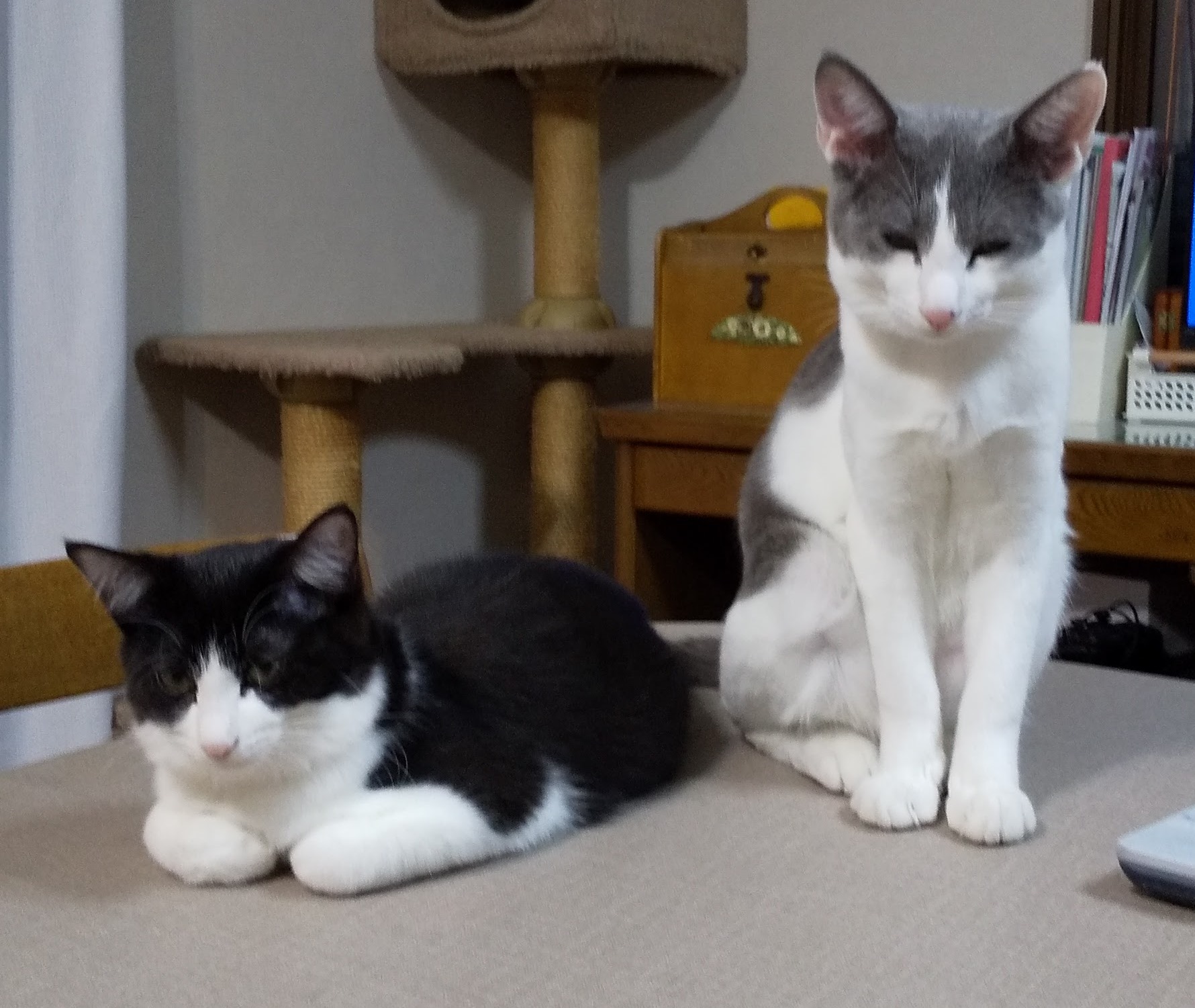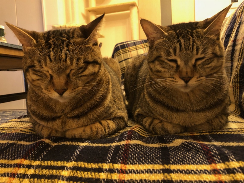 いつも仲良しの2にゃんです。ママさん、割り込みたいそうです(笑)
