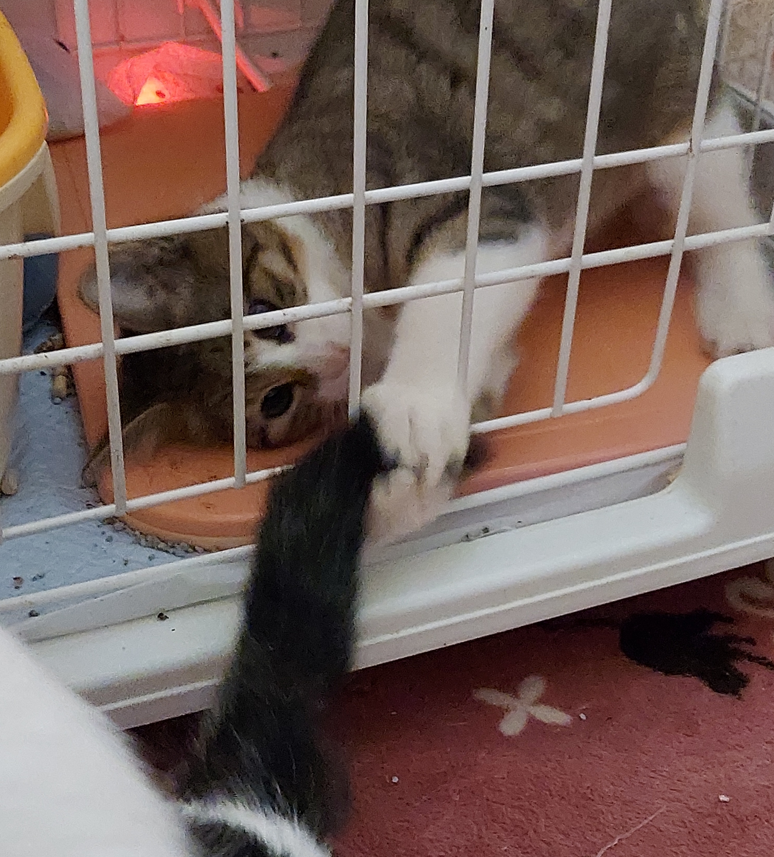 子猫をおとりにしてママを捕まえようと、最後の1匹を捕獲器から小ケージに移動の時にわずかなすき間から出てしまいました。