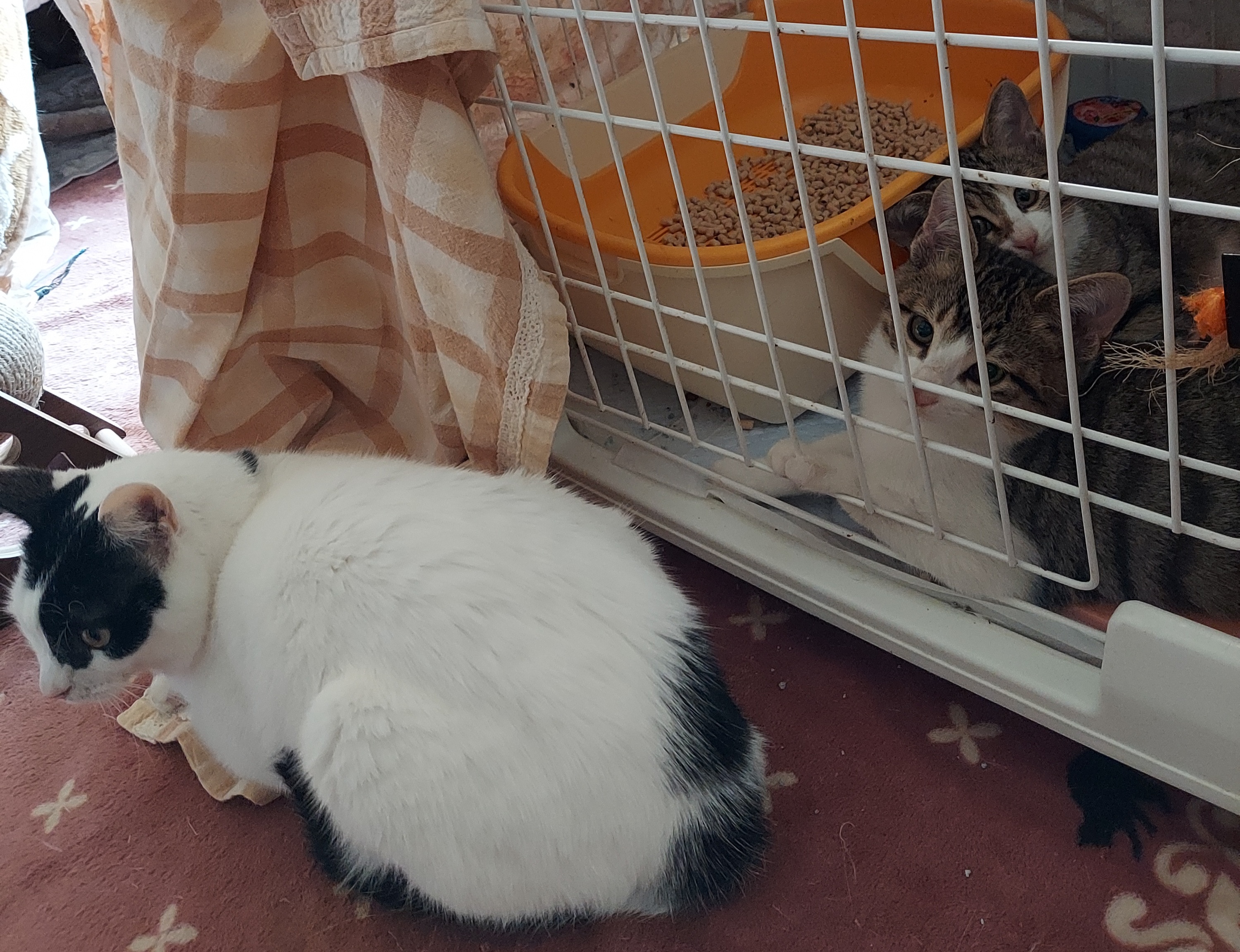 みんにゃ避妊去勢済とはいえやはりいきなり一緒はちょっともめそうなので、さわこさんは専用スペース拡大して仕切りは残しました。