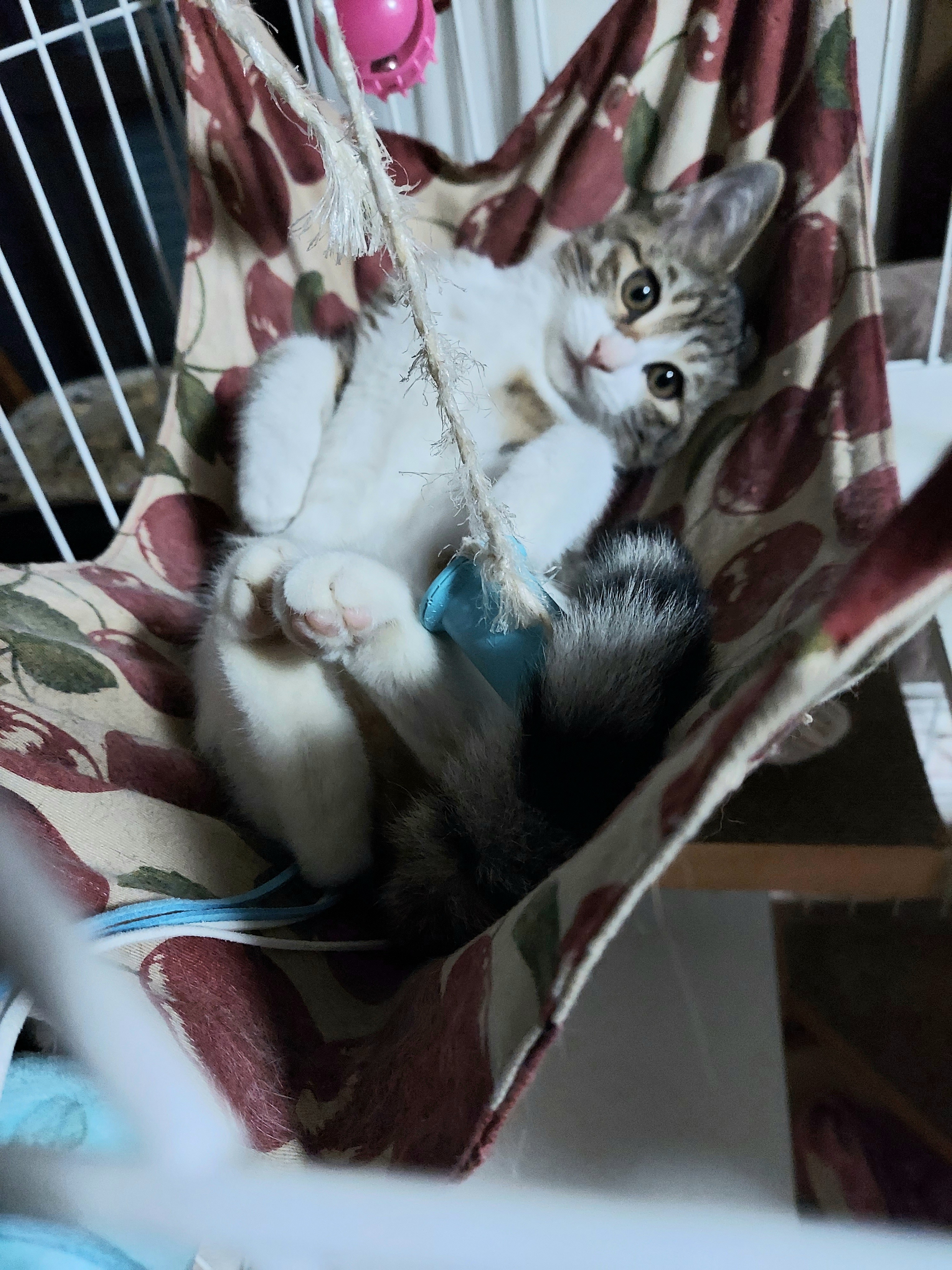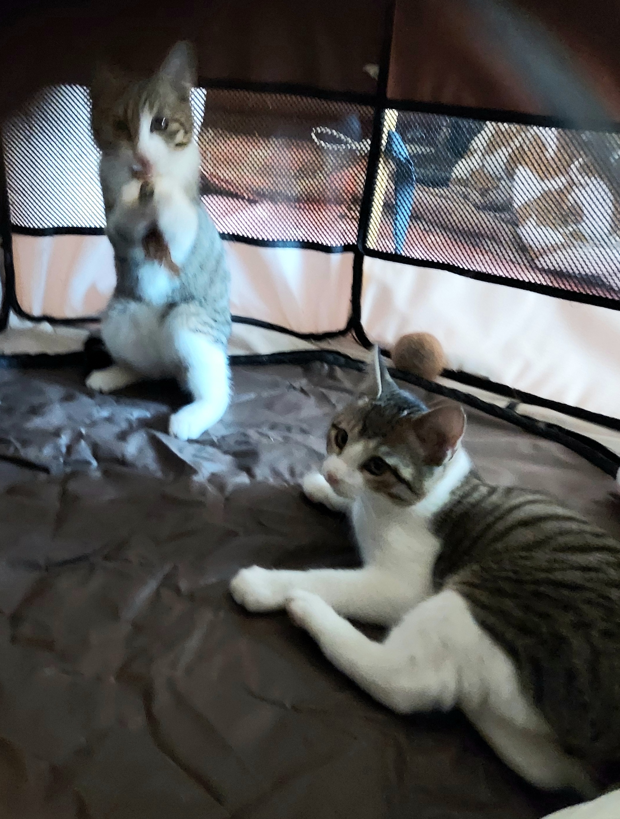 わちゃわちゃとケージの中でソフトに遊び