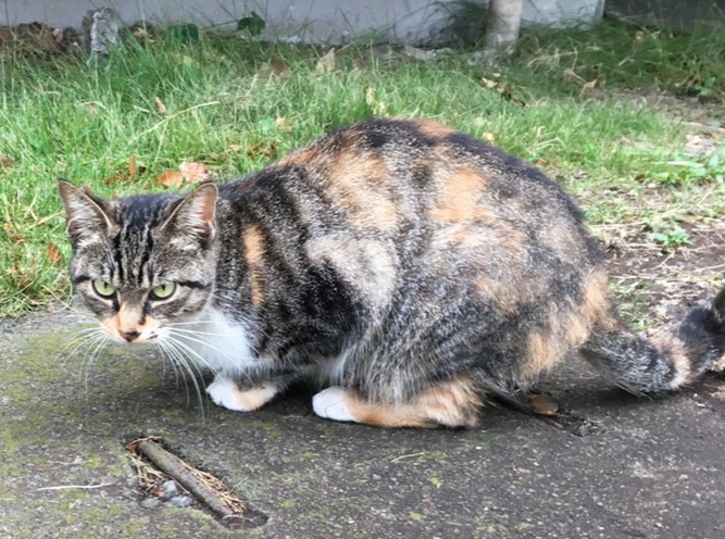 駐輪場でご飯を待っていた三毛猫さんは、どこで子育てをしているのでしょうか。